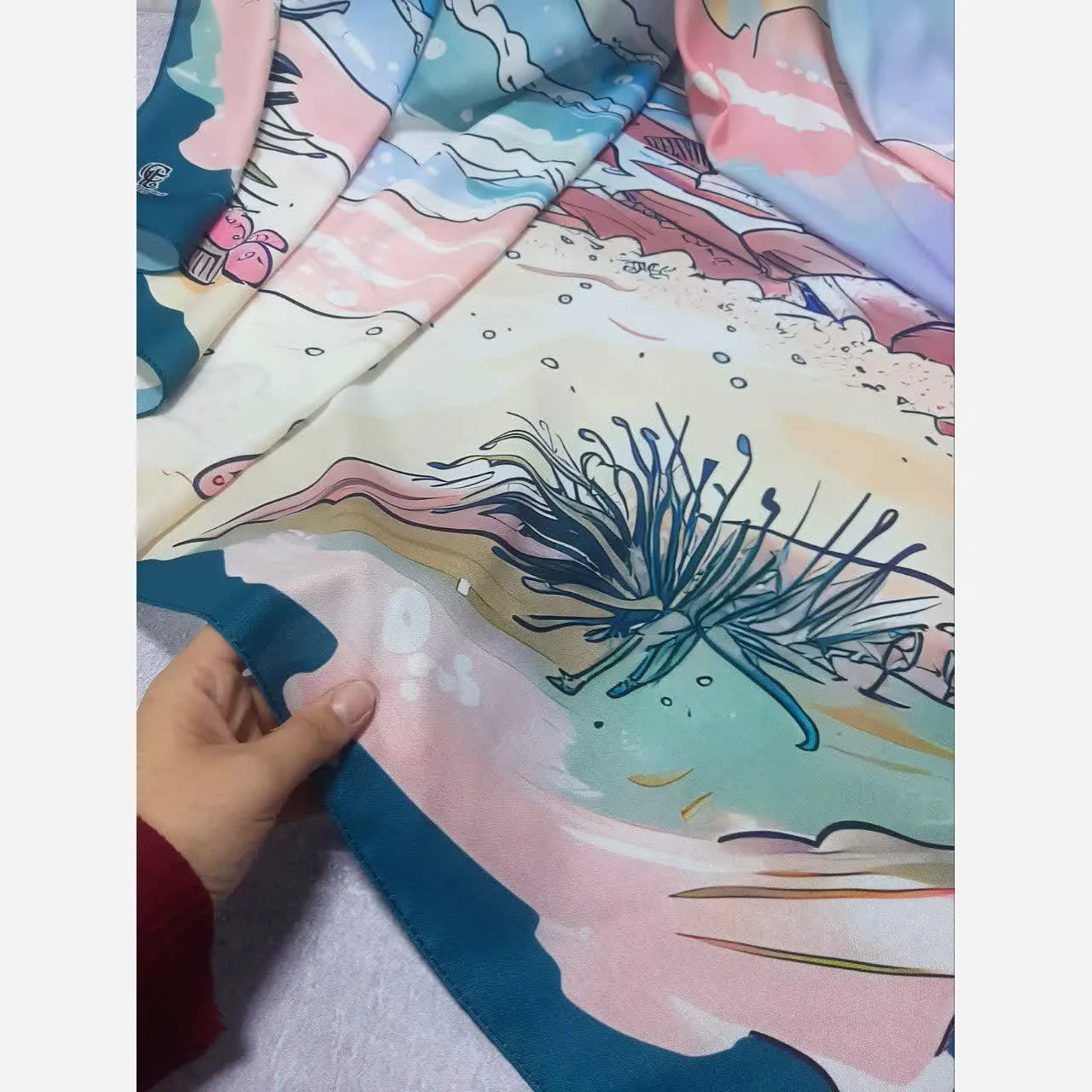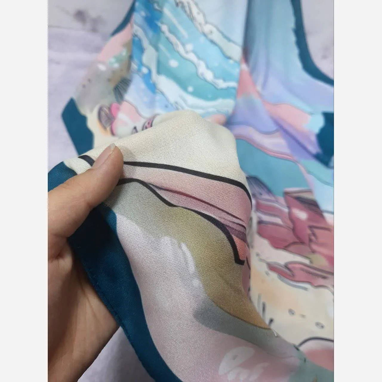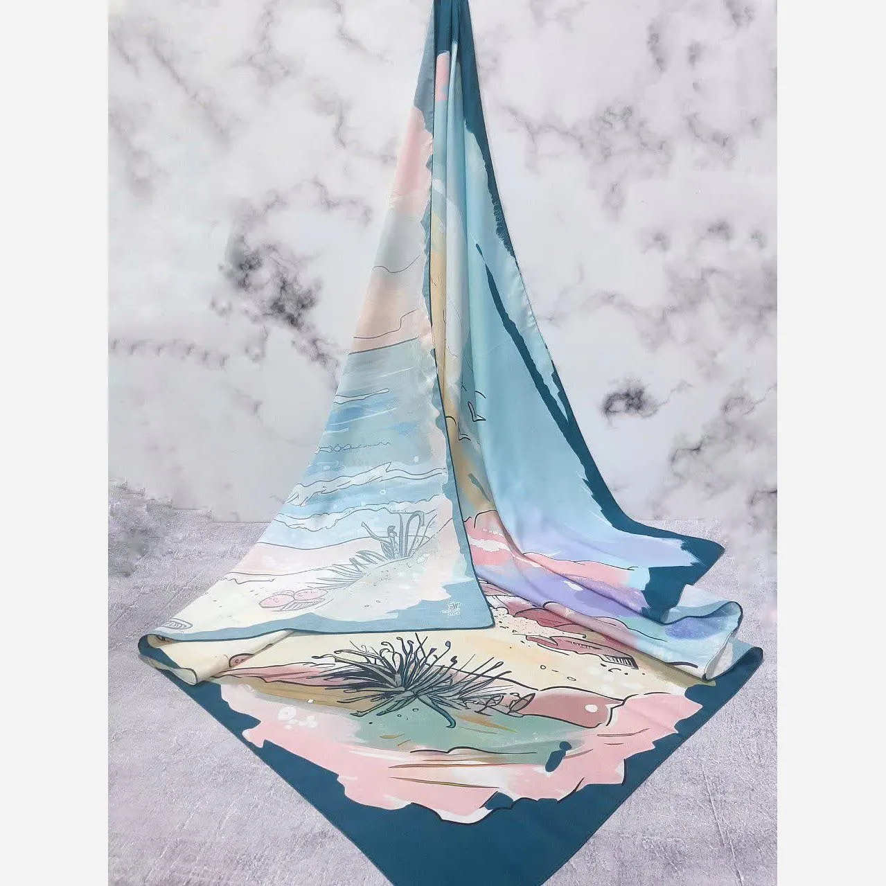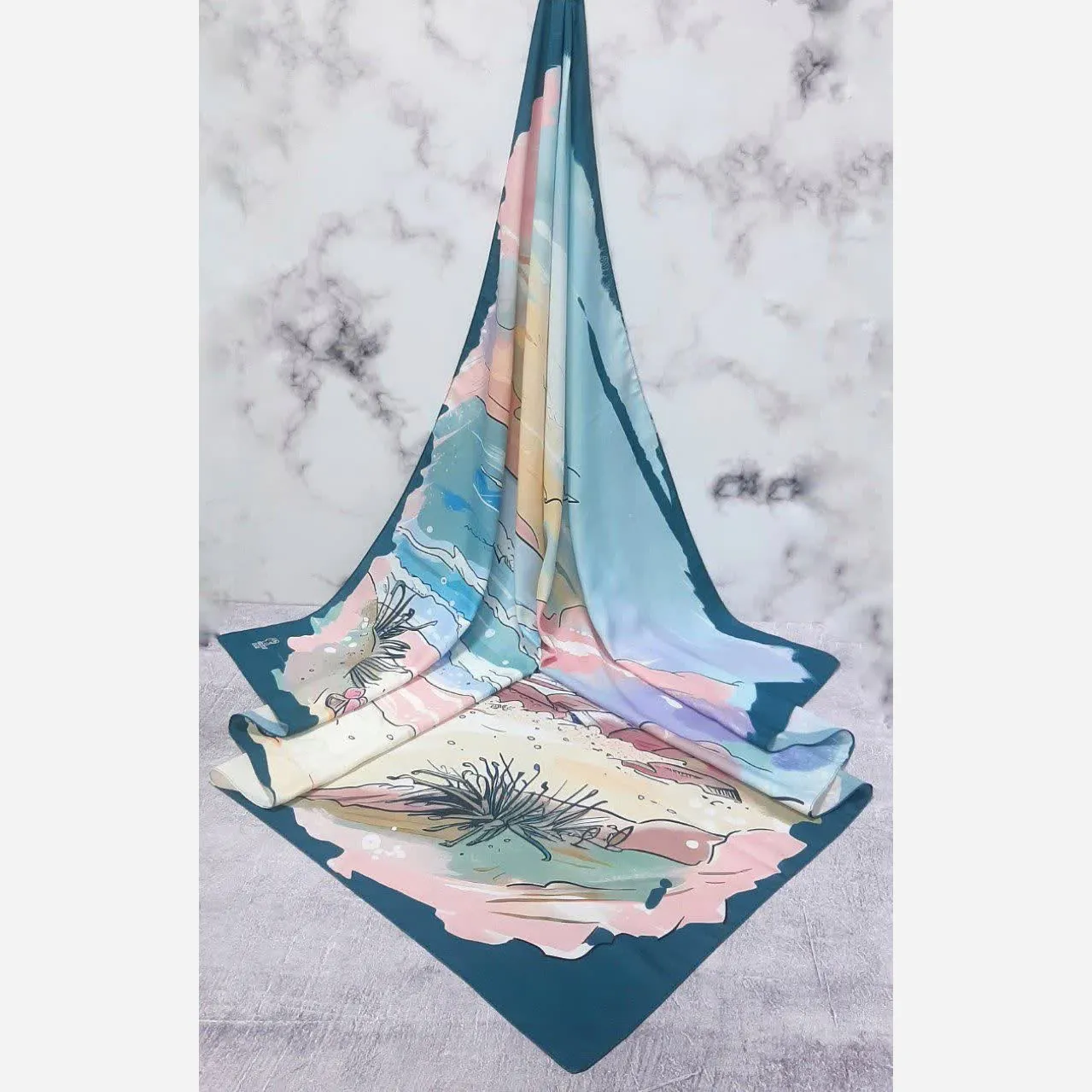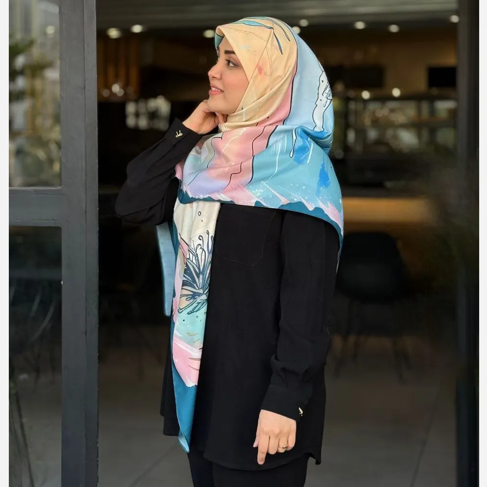 این روسری با طرح الهام گرفته از دریا و آسمان، انتخابی ایدهآل برای افزودن جلوهای خاص به استایلهای ساده و مونوکروم شماست. ترکیب هنرمندانه رنگ آبی دریا و صورتی آسمانی، تضادی چشمنواز و جذاب ایجاد میکند که نگاهها را به خود جلب خواهد کرد.