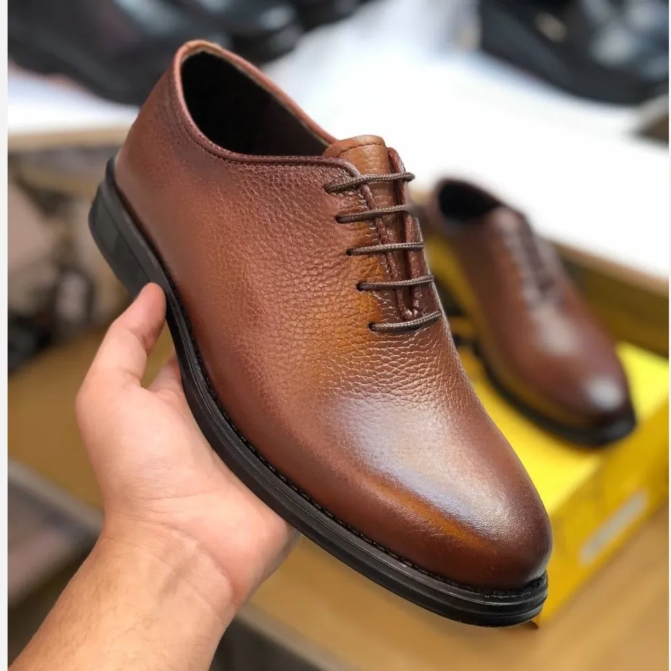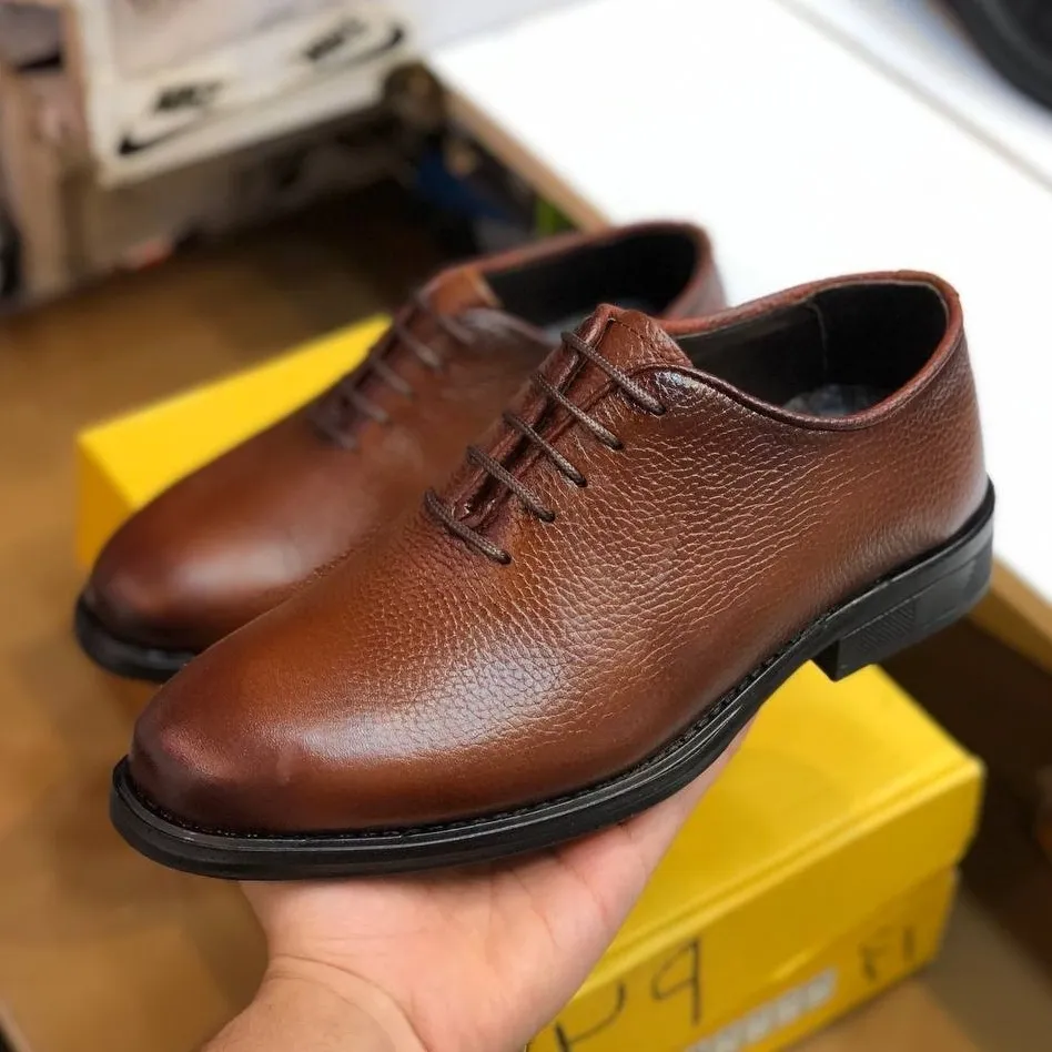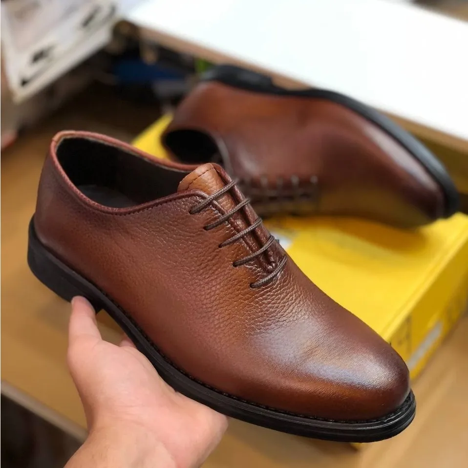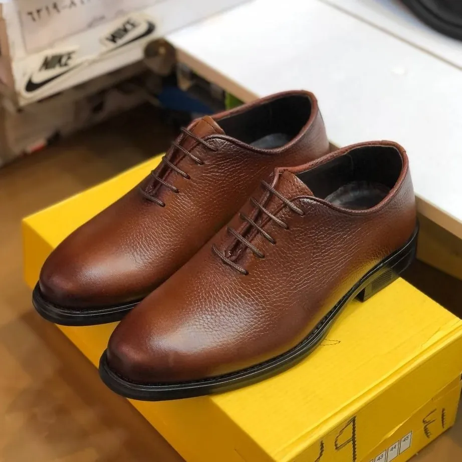 کفش مردانه چرم طبیعی قهوه ای شیک اداری و رسمی مدل 2023