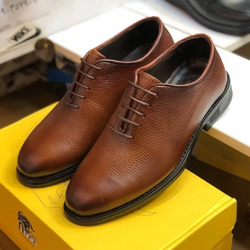 - رویه چرم طبیعی گاوی: بافتی زیبا و مقاوم که دوام و زیبایی کفش را تضمین میکند.