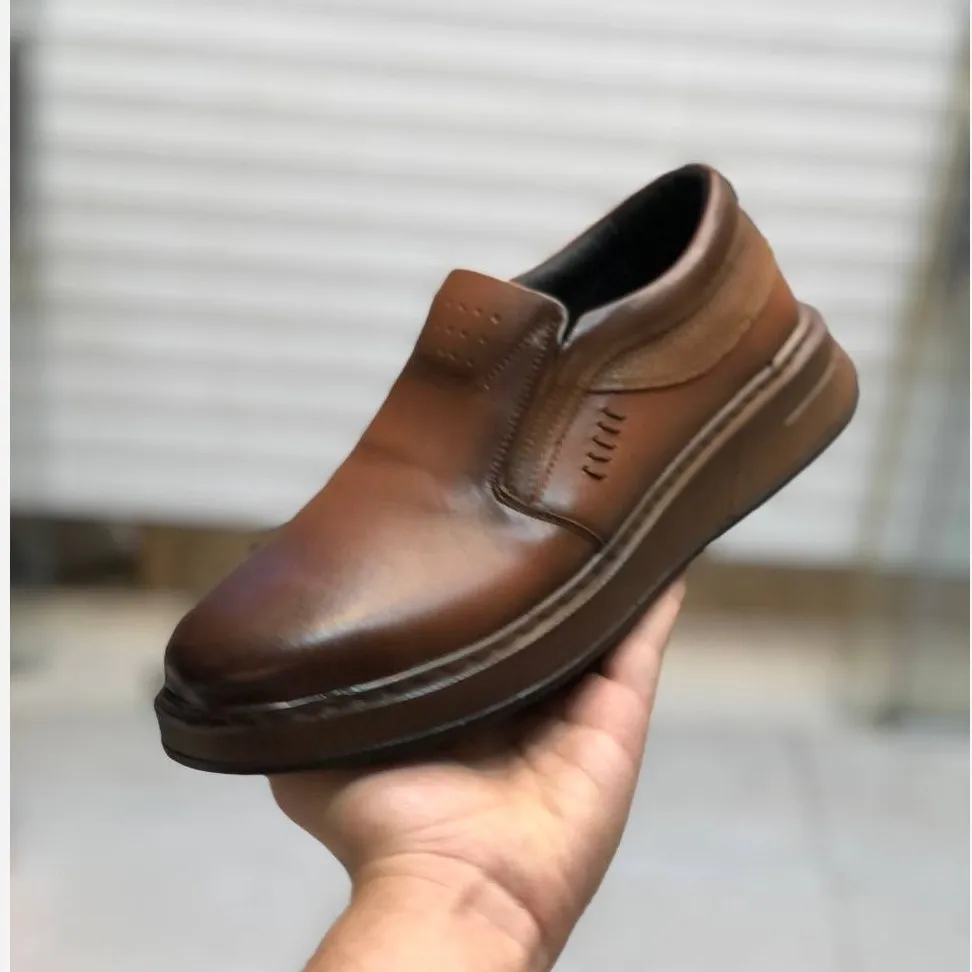 این کفش لوفر مردانه با رویهای از چرم طبیعی صافتی، انتخابی ایدهآل برای استفاده روزمره است. طراحی طبی و زیره پیو دو رنگ نشکن، راحتی و دوام بالایی را برای شما تضمین میکند.