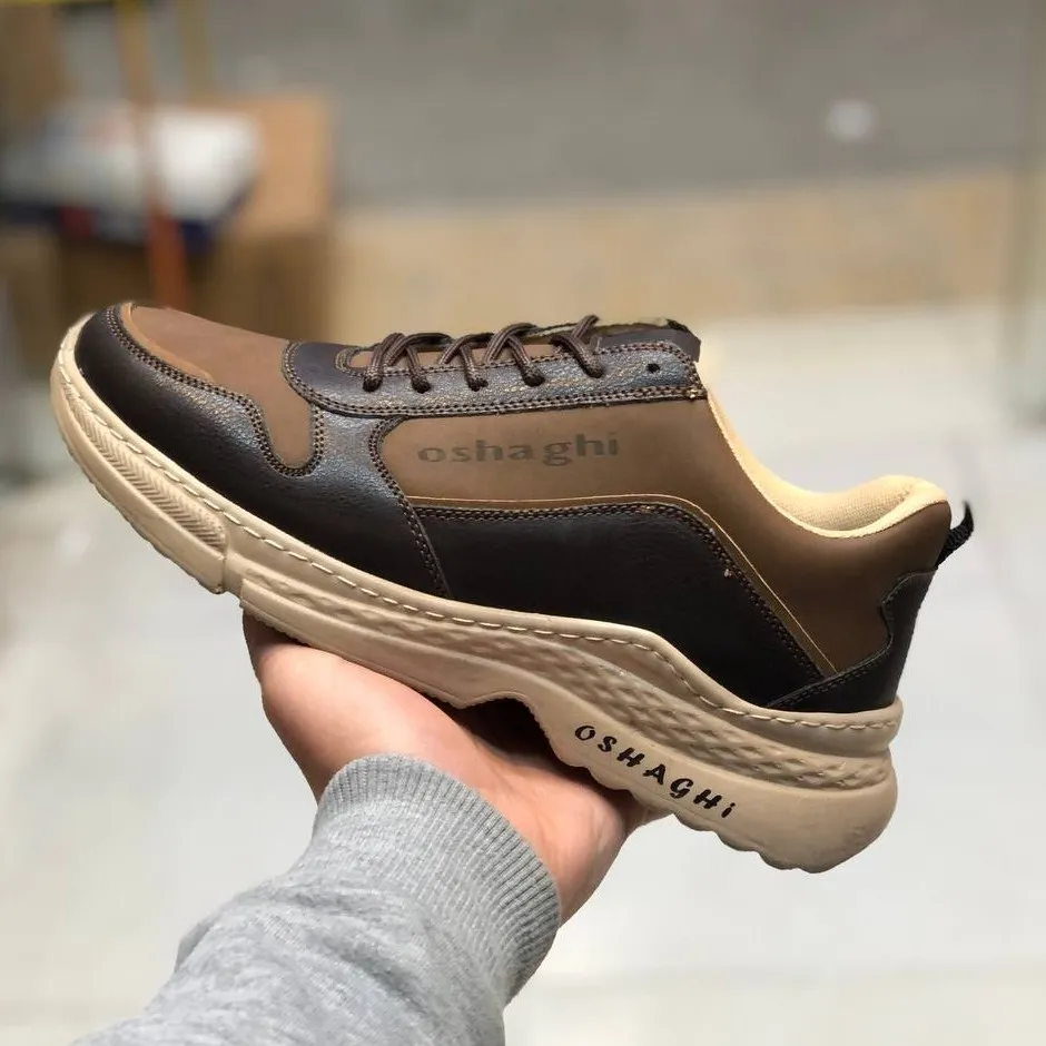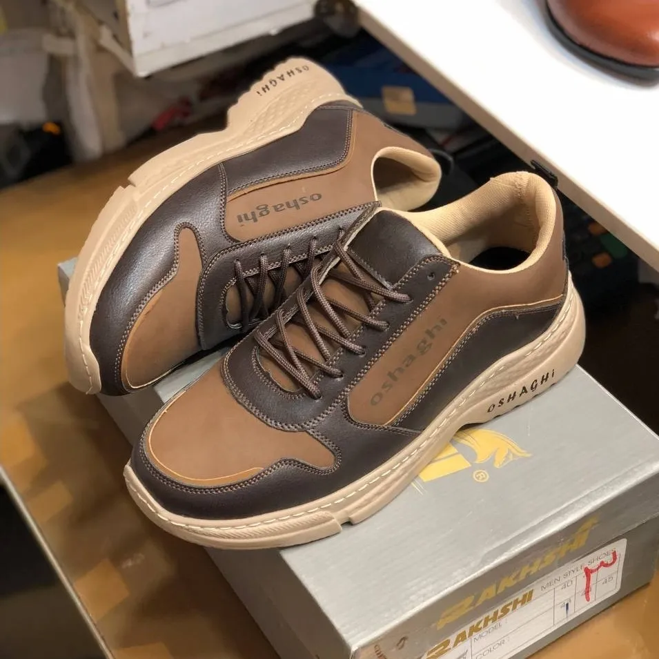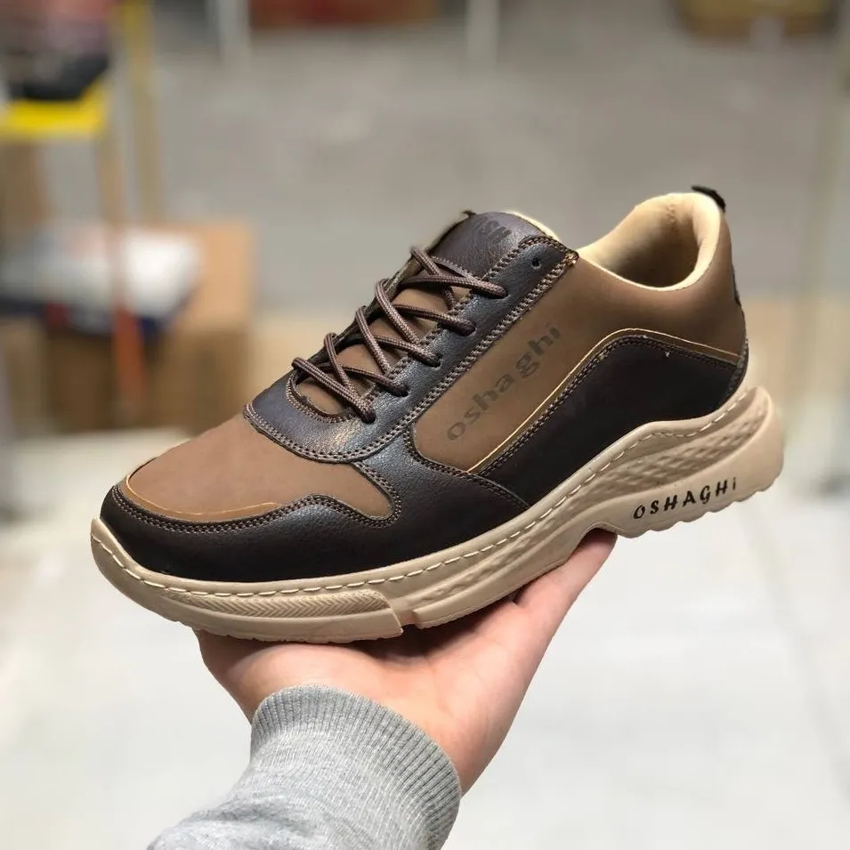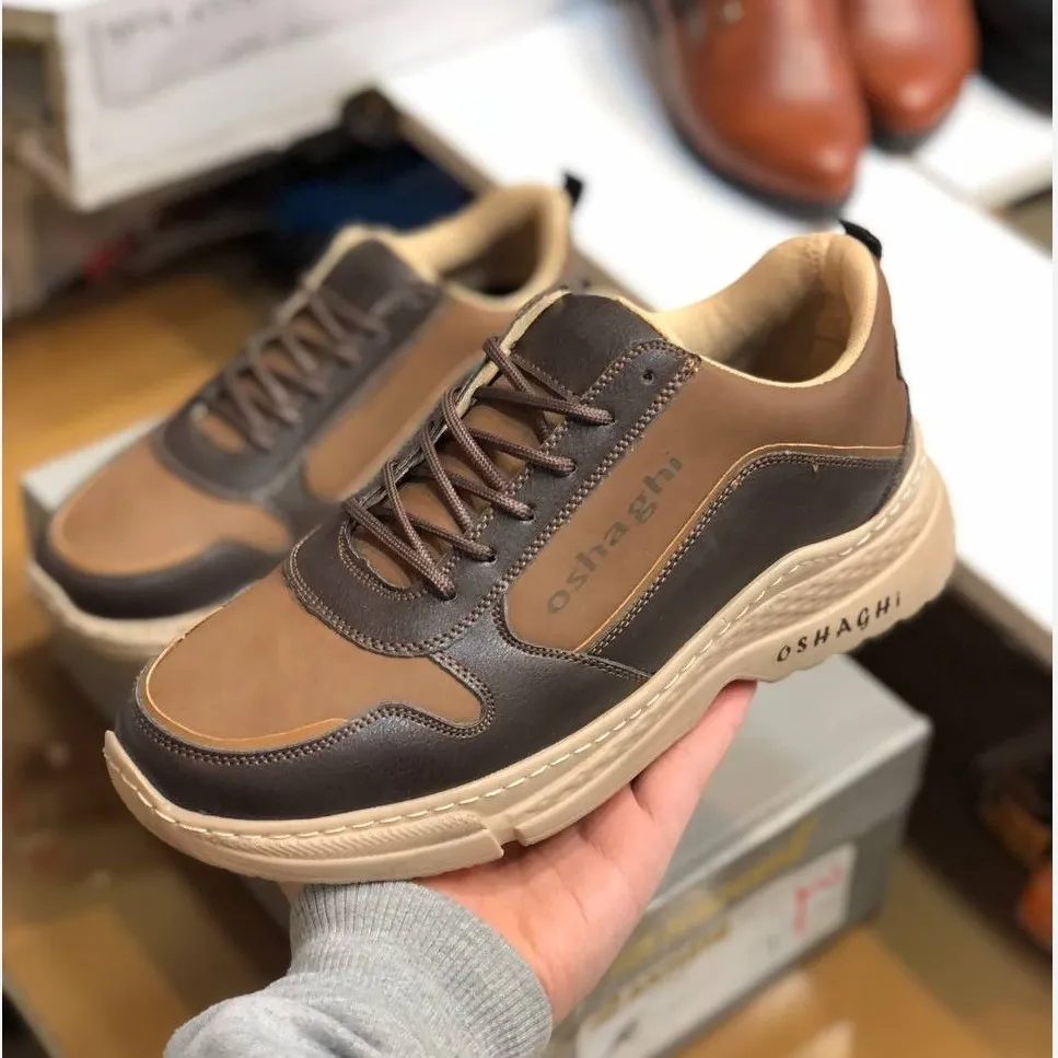 کفش اسپرت مردانه چرم صنعتی قهوه ای روشن و تیره مدل OSHAGHI کد 101