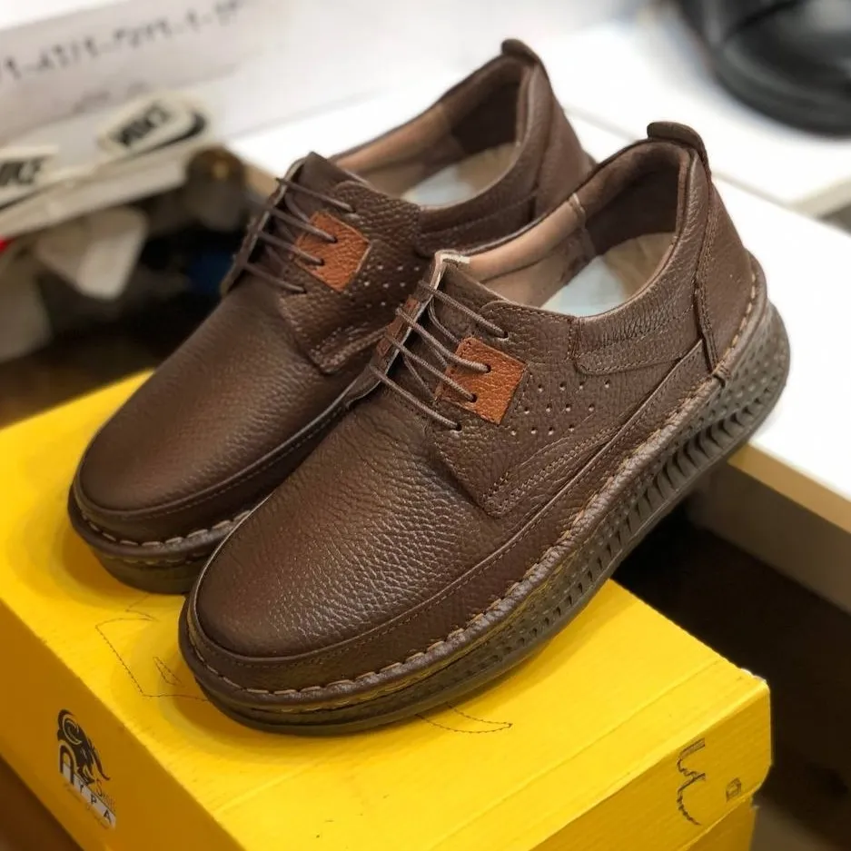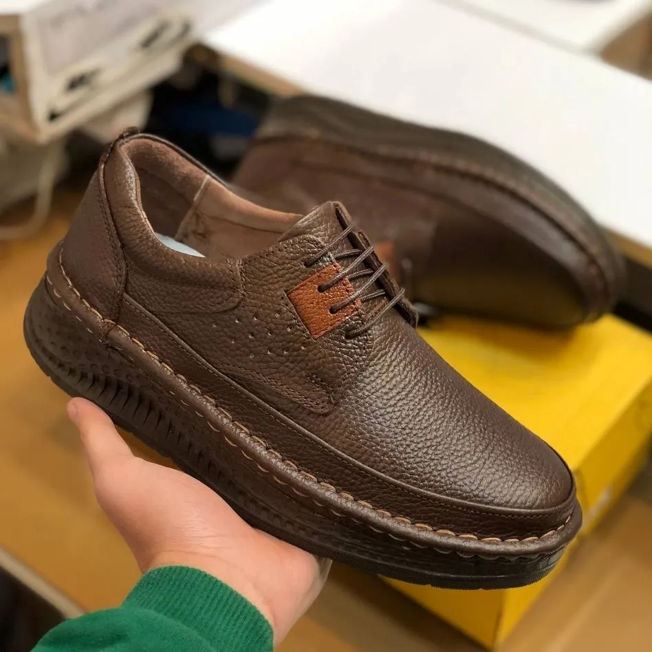 کفی طبی چرمی این کفش، نرم و ارتوپدی است و به حفظ سلامت پا در طولانی مدت کمک شایانی میکند. دوخت دور کار، استحکام و طول عمر بالای کفش را تضمین کرده و خیال شما را از بابت کیفیت آسوده میسازد. قالب استاندارد و طراحی ارگونومیک این مدل، فیت بینظیری را برای پاهای شما فراهم میآورد.