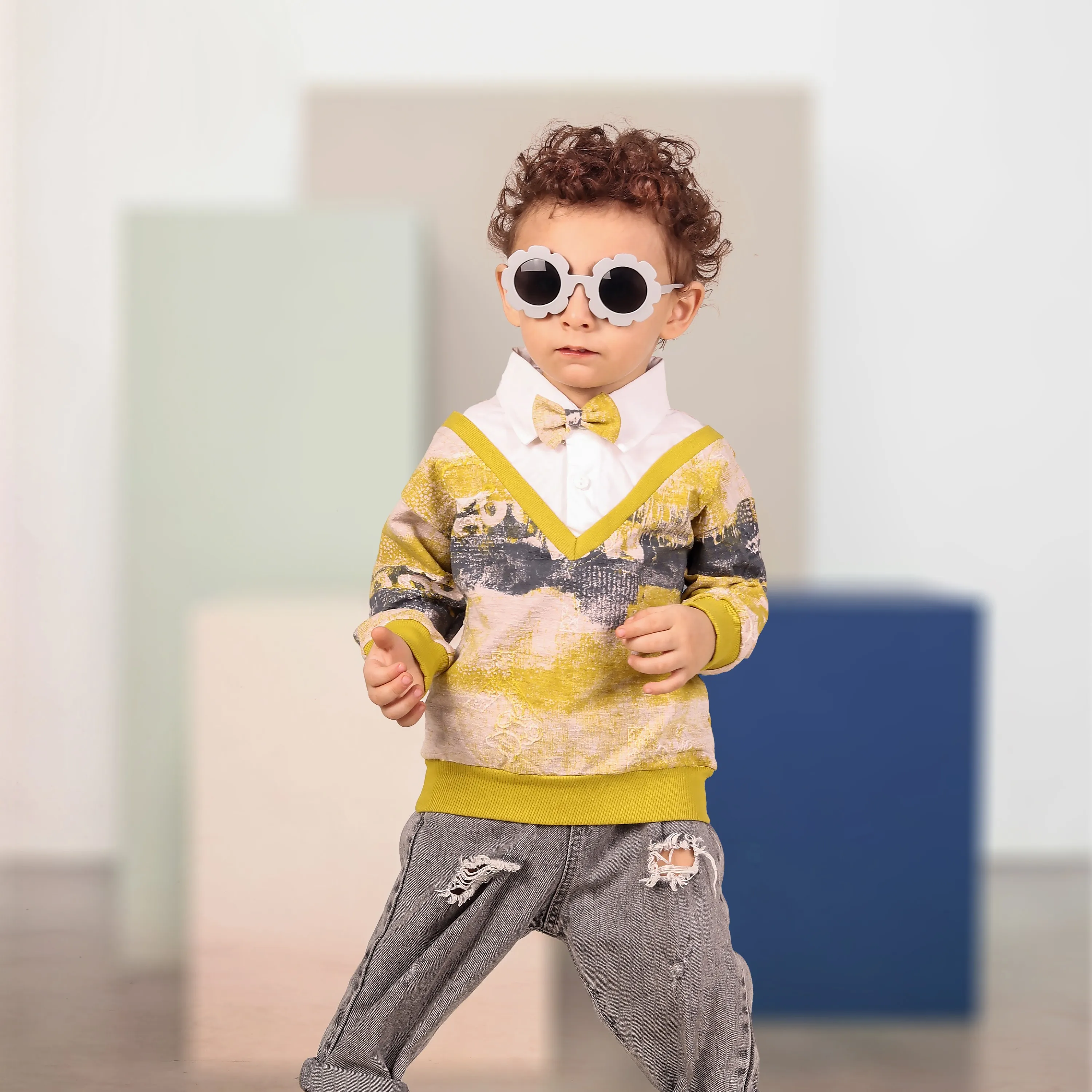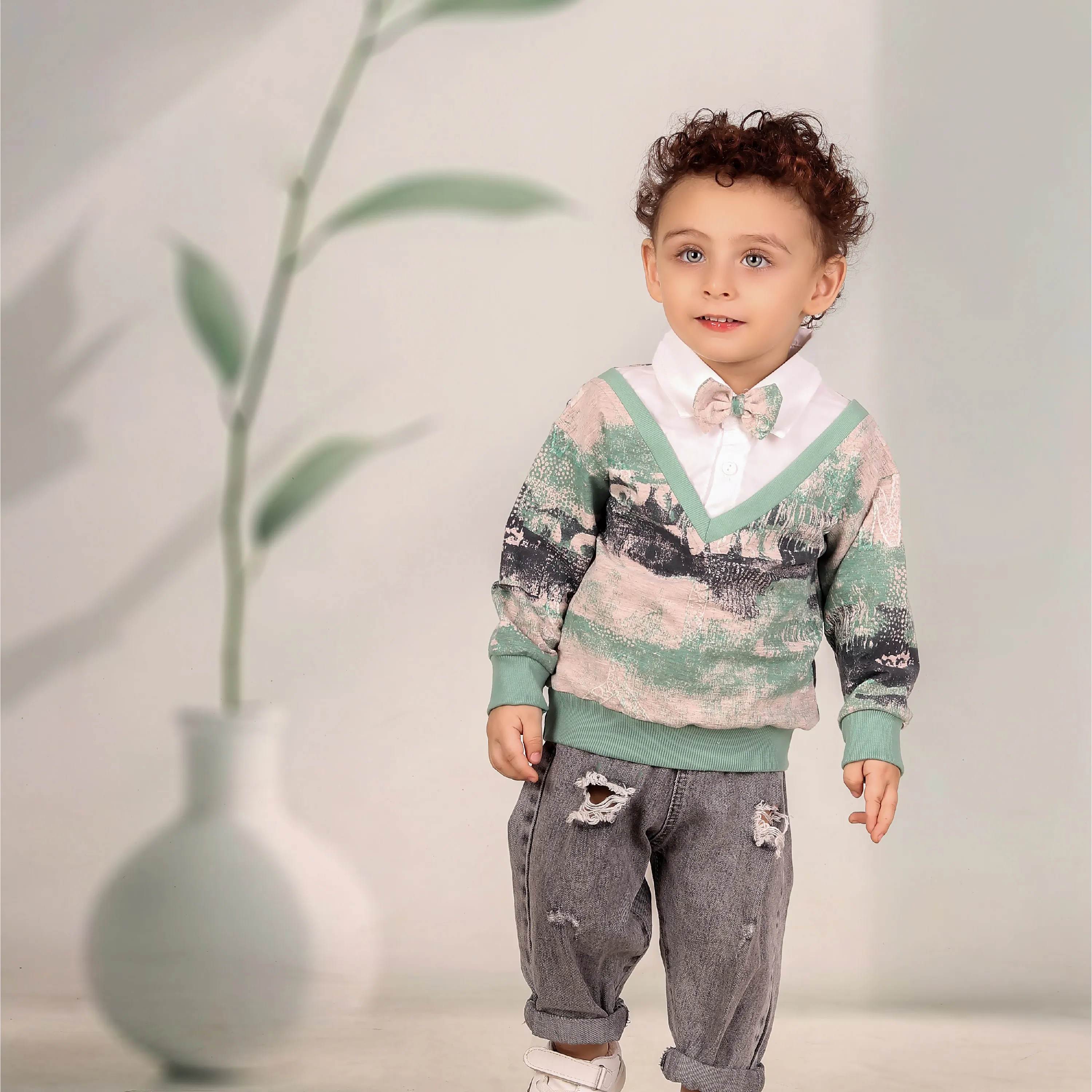 ست بلوز و پاپیون پسرانه طرحدار شیک