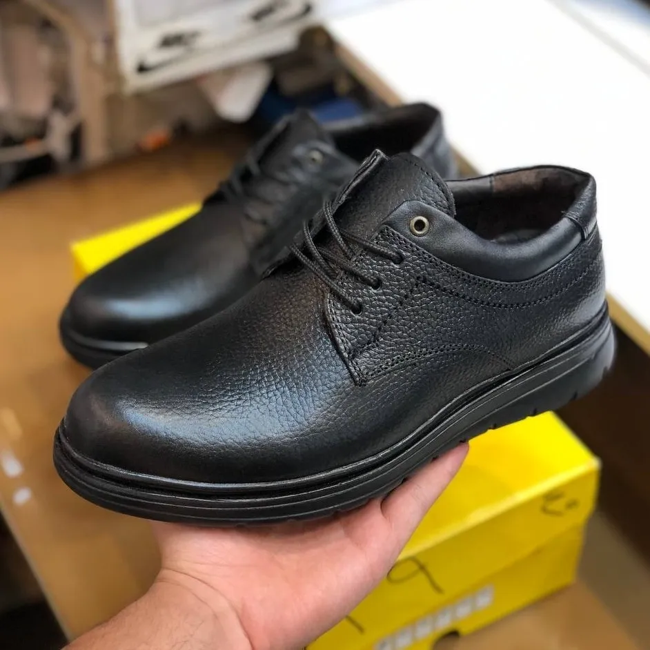 کفش چرم مردانه دنا مدل رسمی و اداری رویه چرم طبیعی گاوی زیره پیو سبک و راحت ضمانت دار