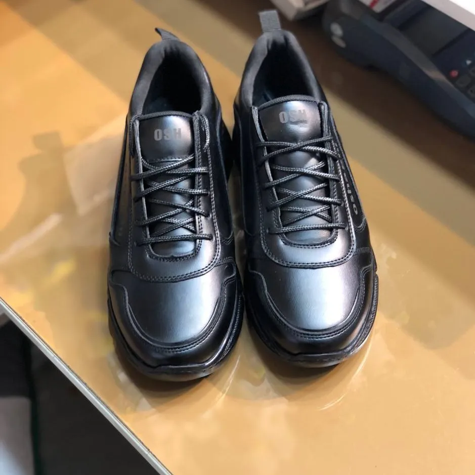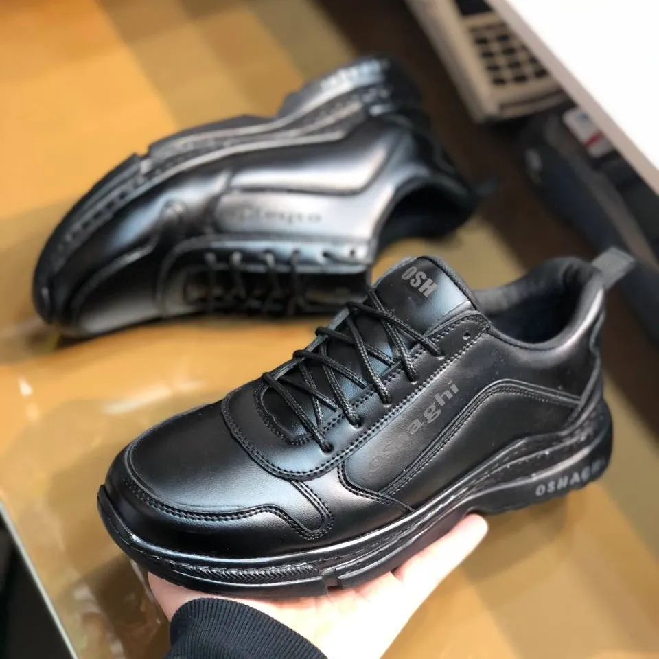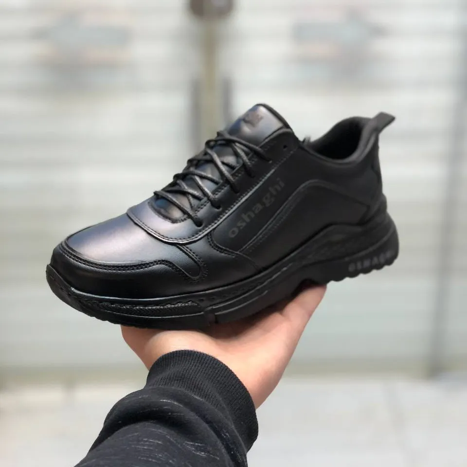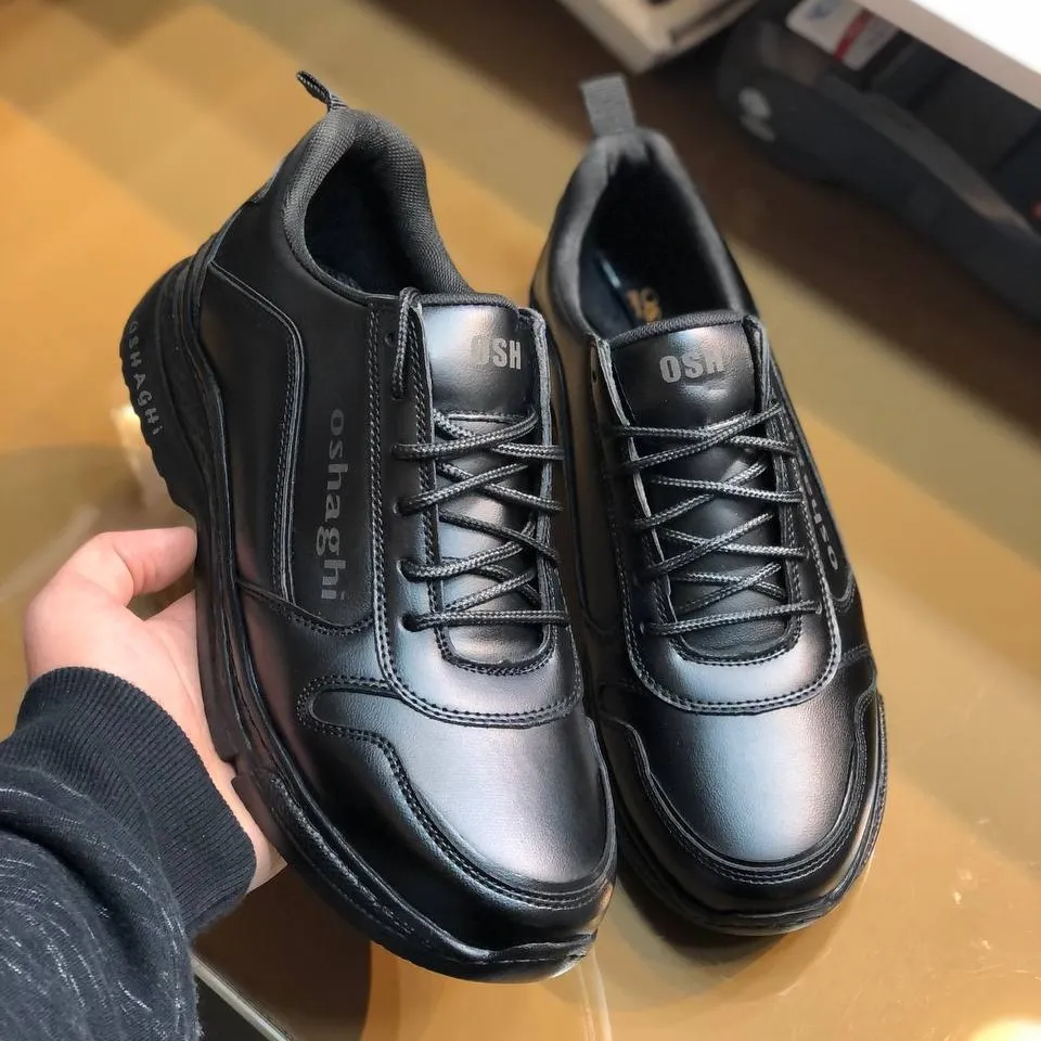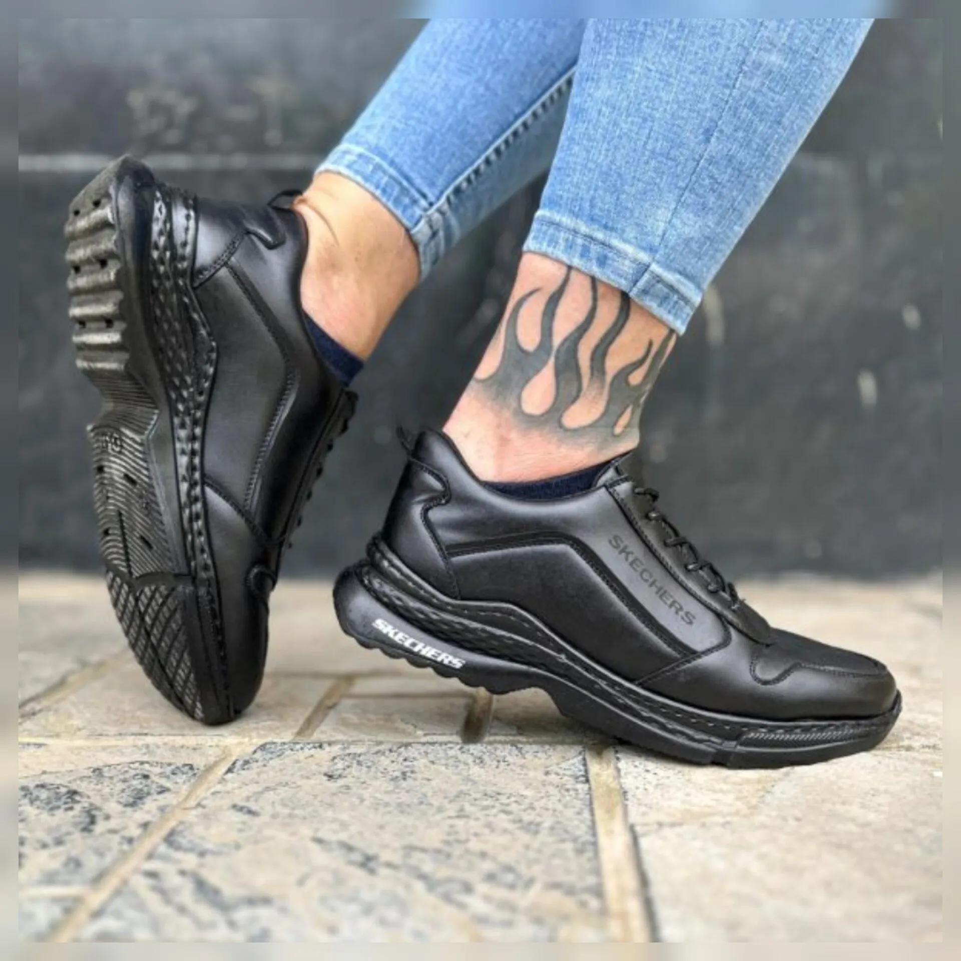 کفش اسپرت مردانه چرم صنعتی زیره پیو طبی سبک راحت طرح اسکچرز مشکی