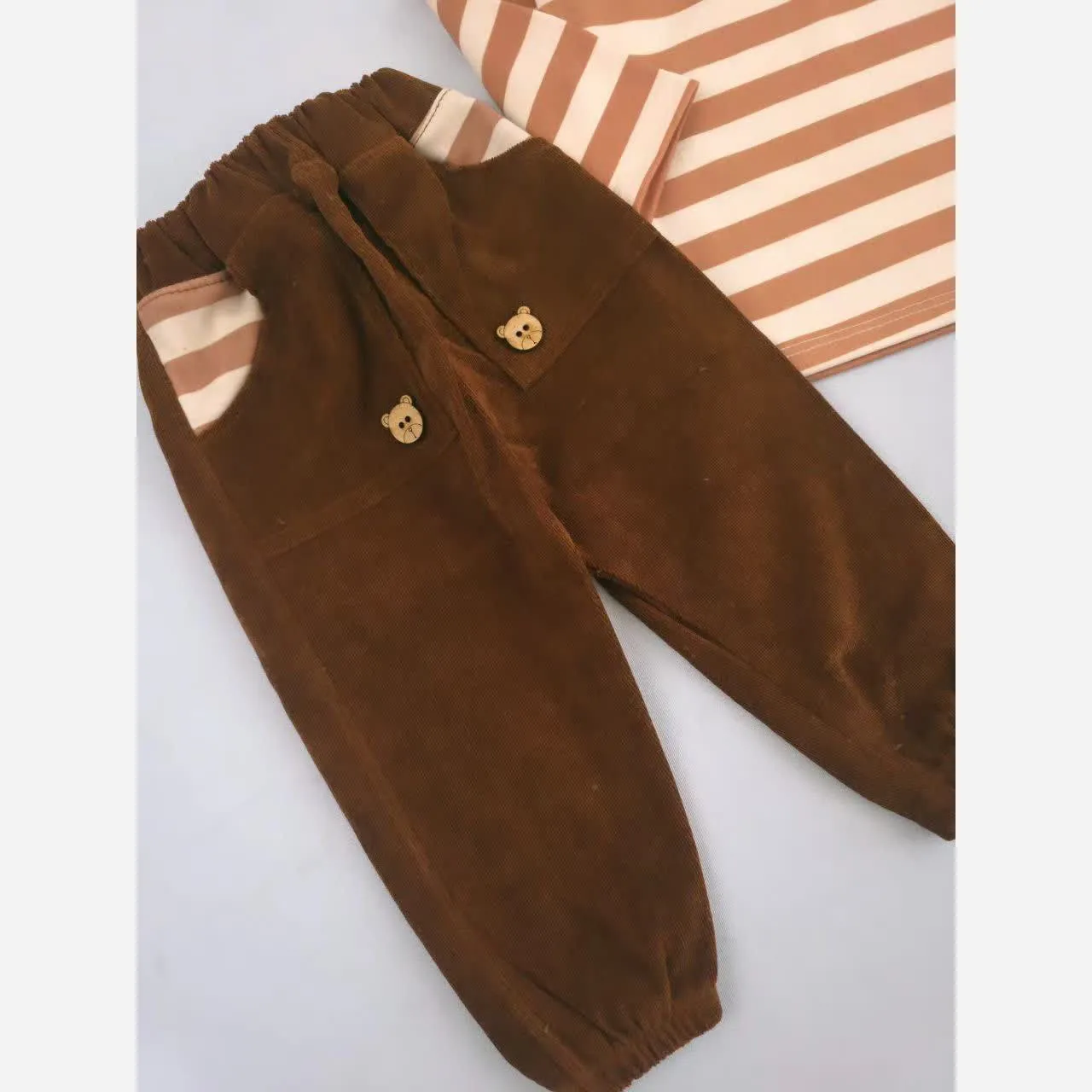 بلوز شلوار راه راه طرح خرس تدی بچگانه | دخترانه و پسرانه | جنس پنبه و مخمل کبریتی