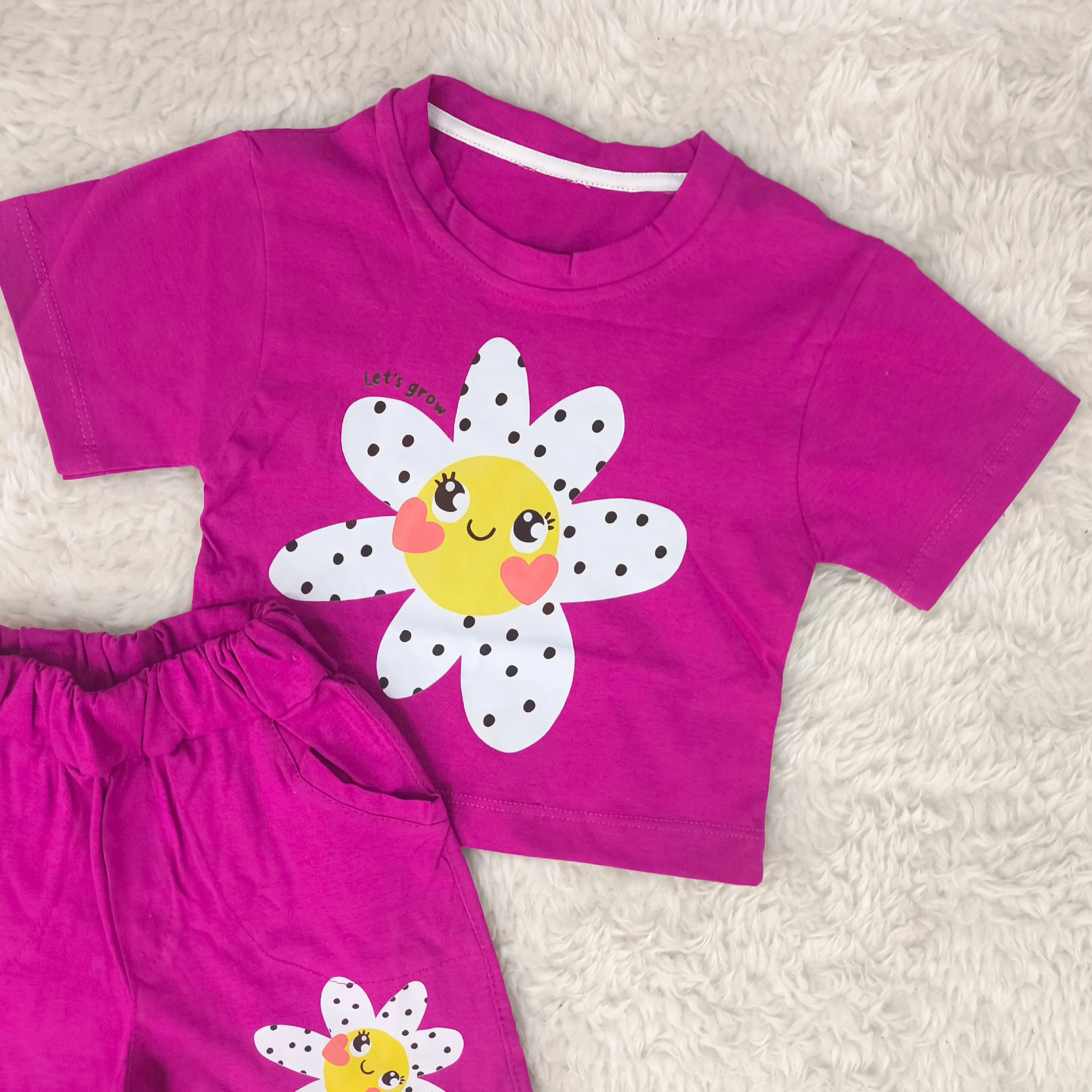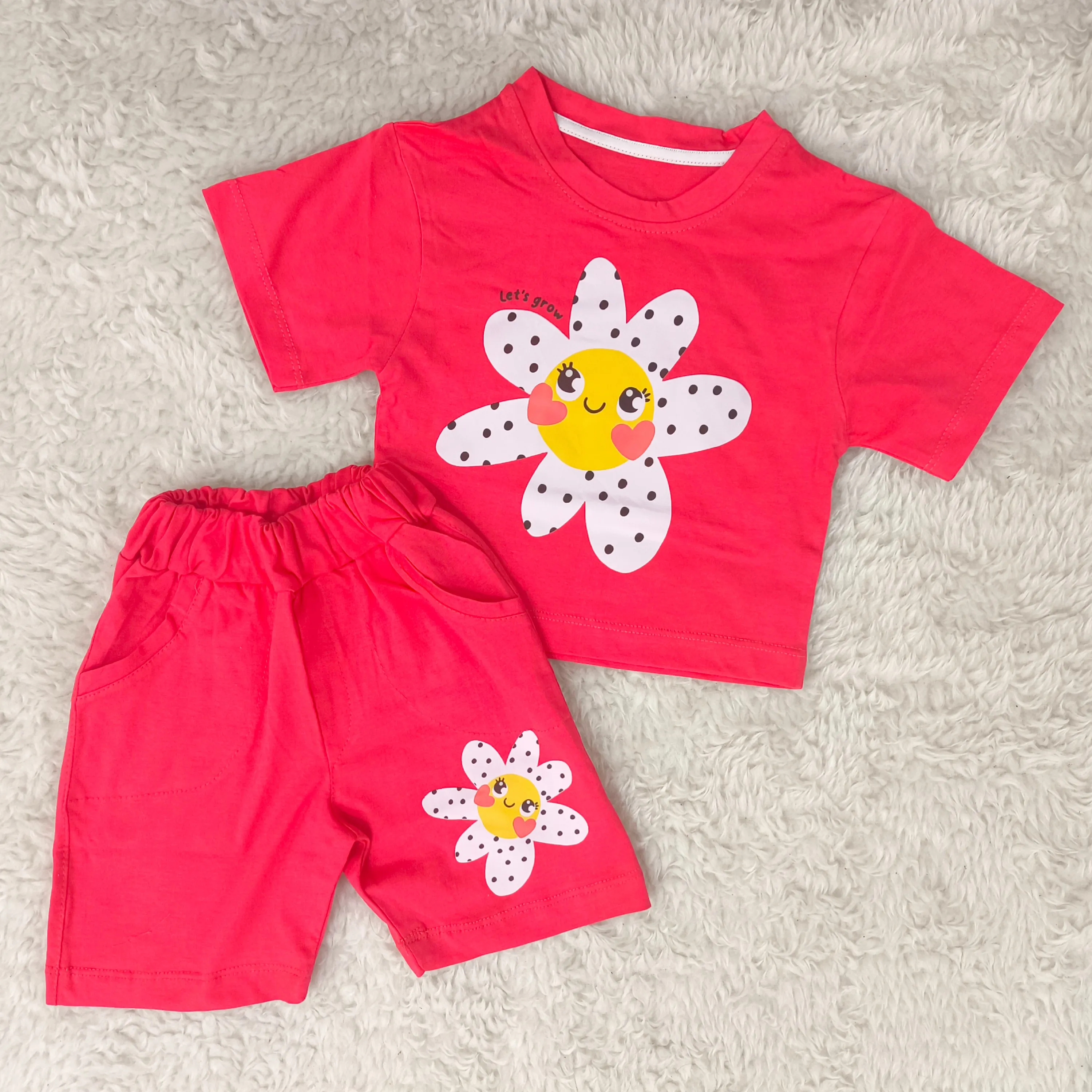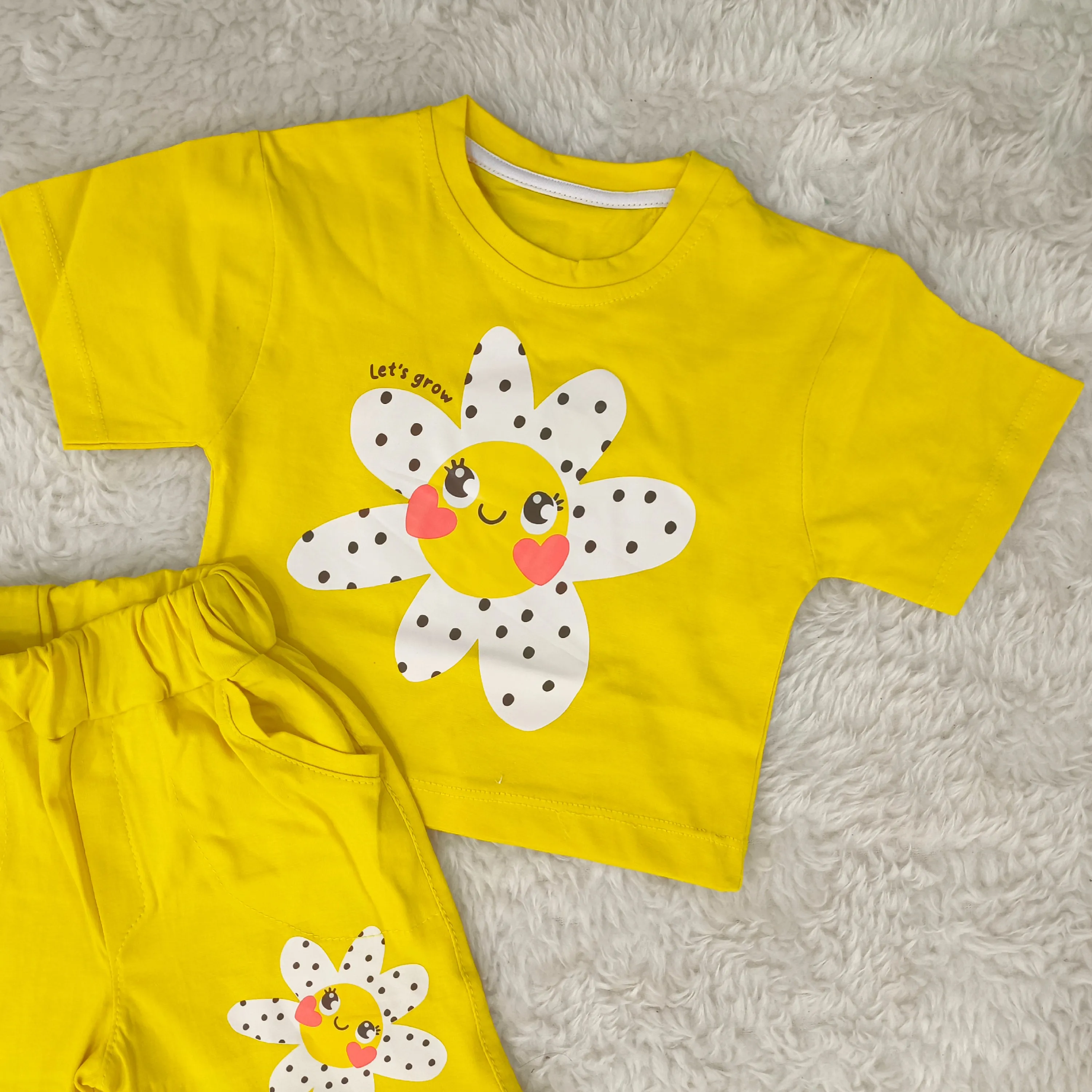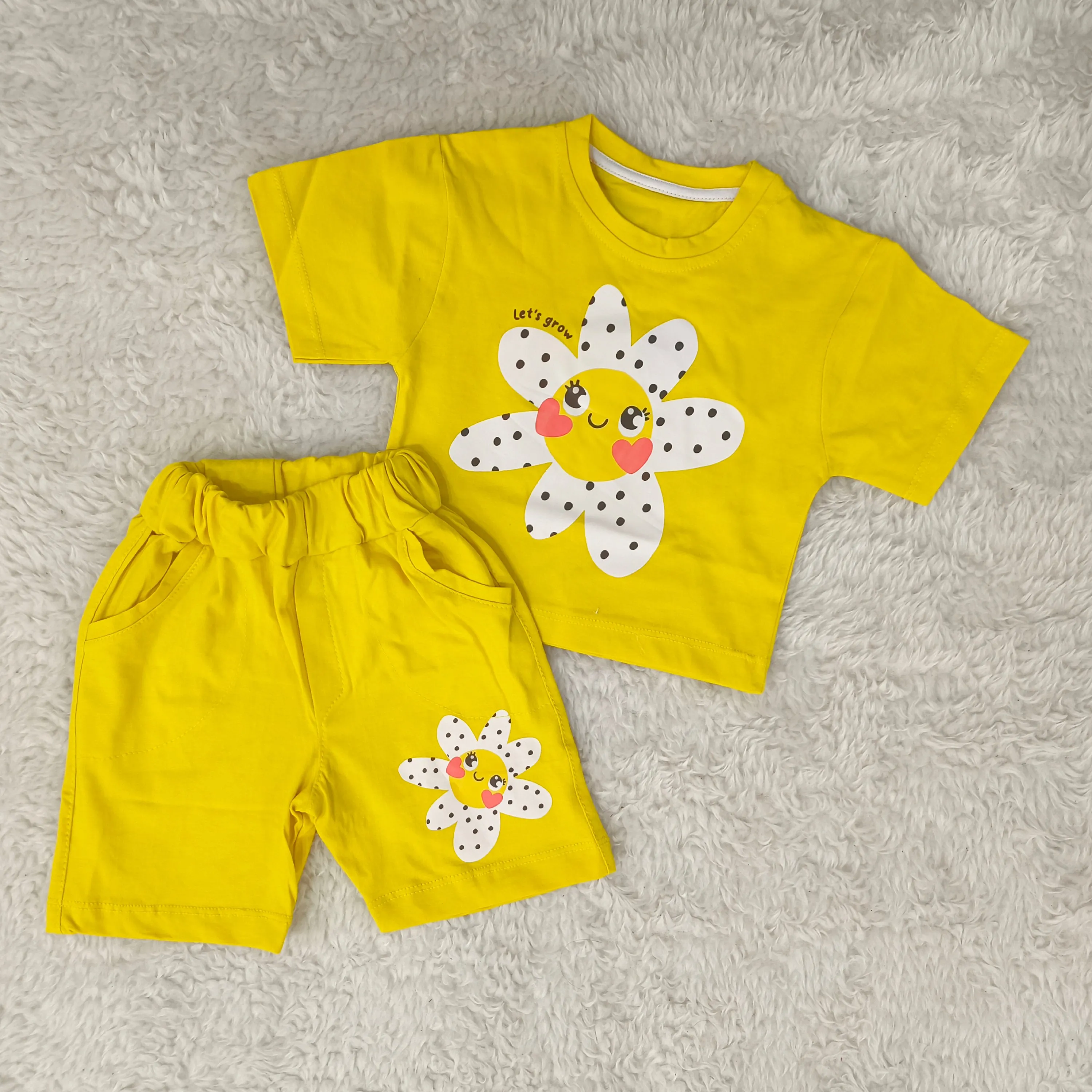 ست تیشرت و شورتک نخی طرح بابونه دخترانه و پسرانه خندان