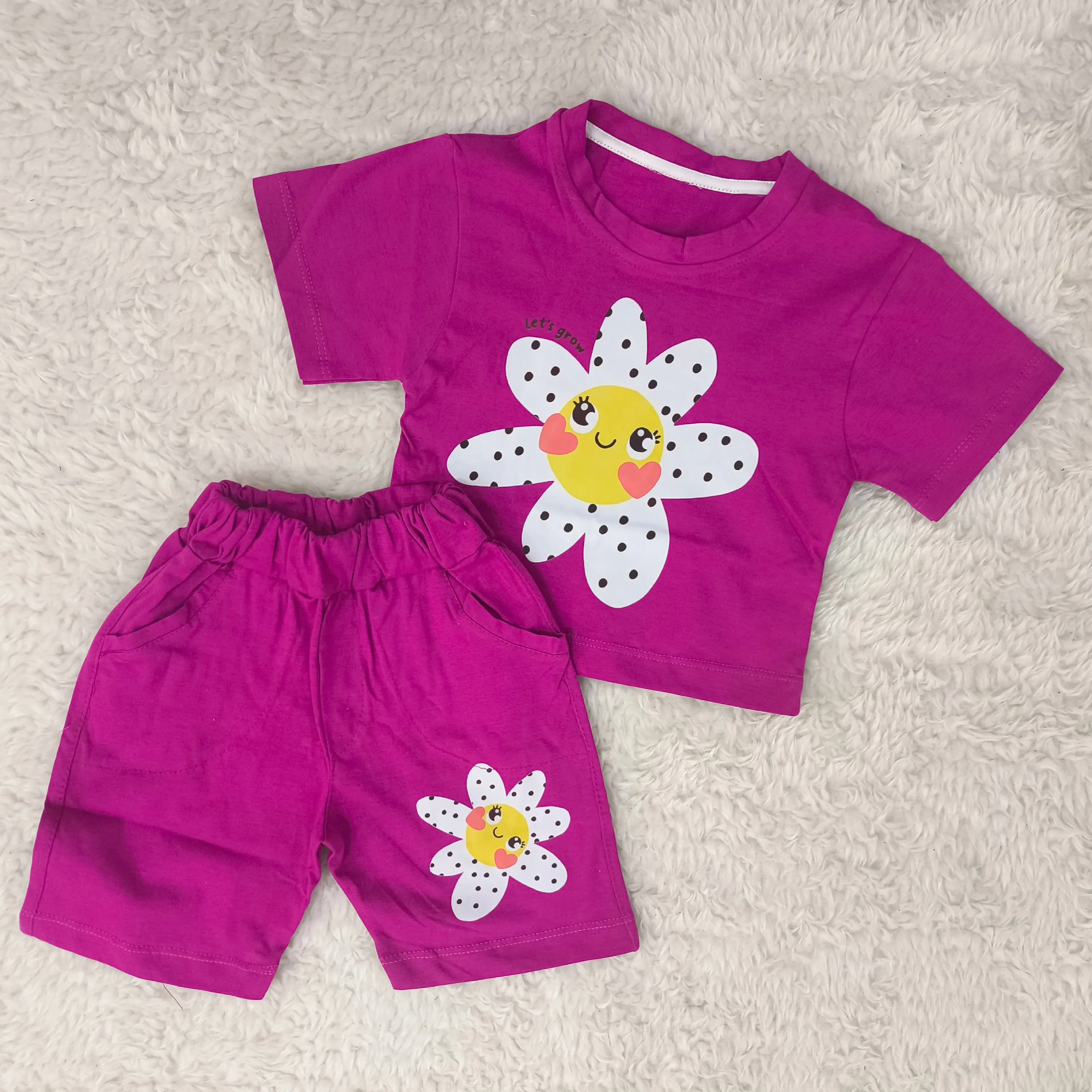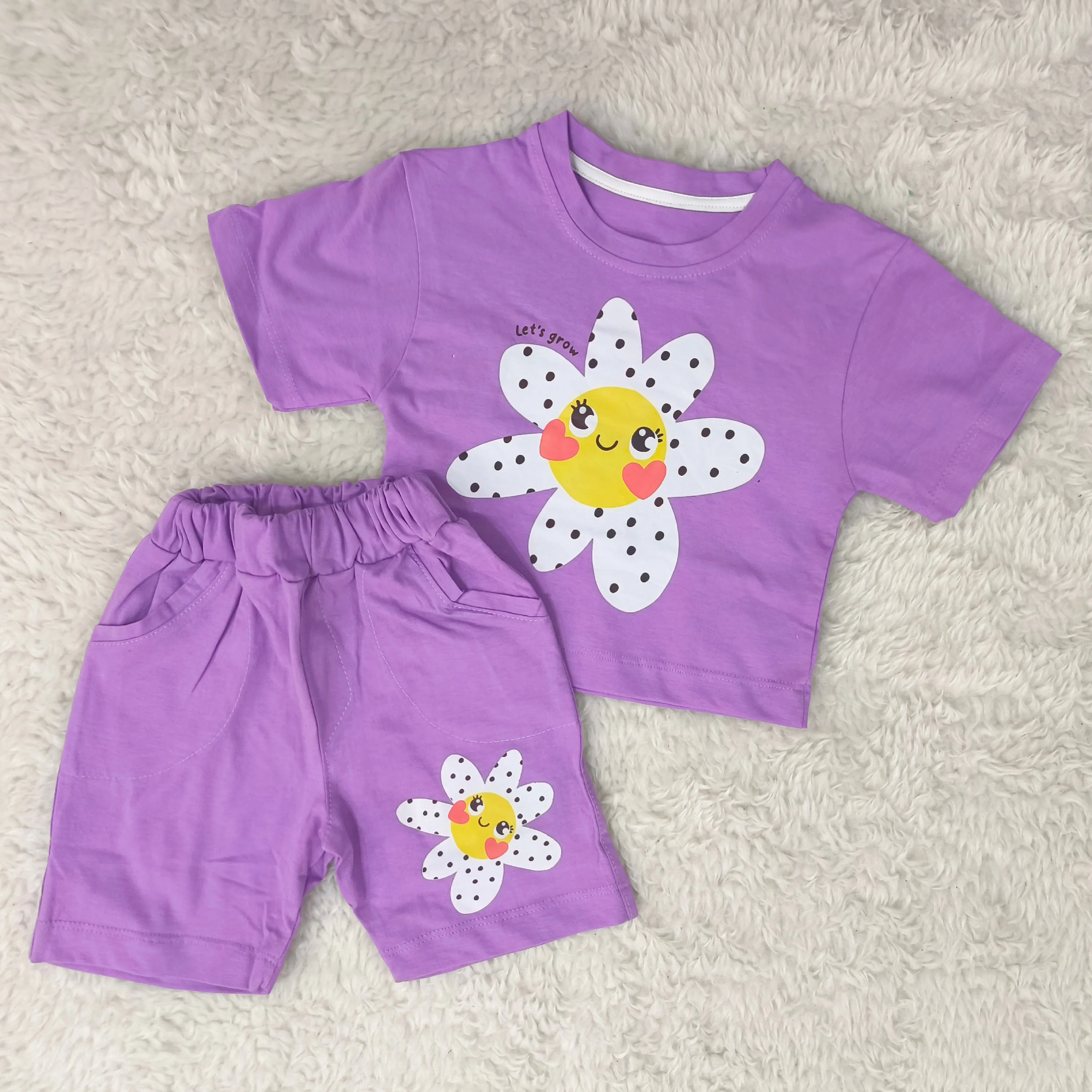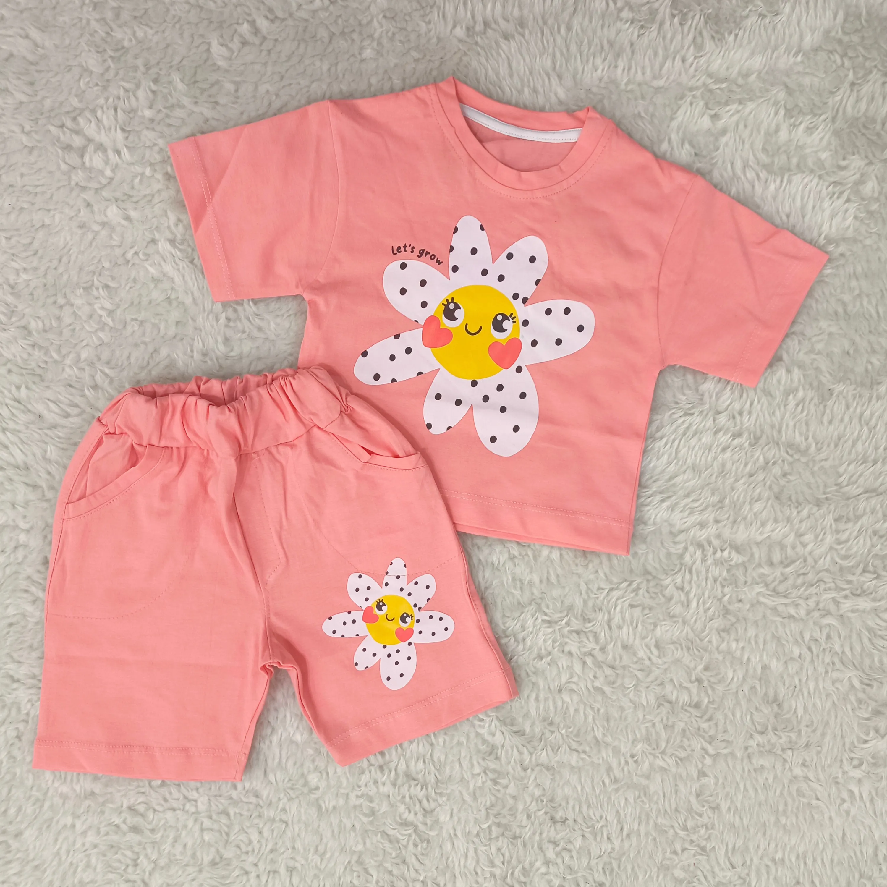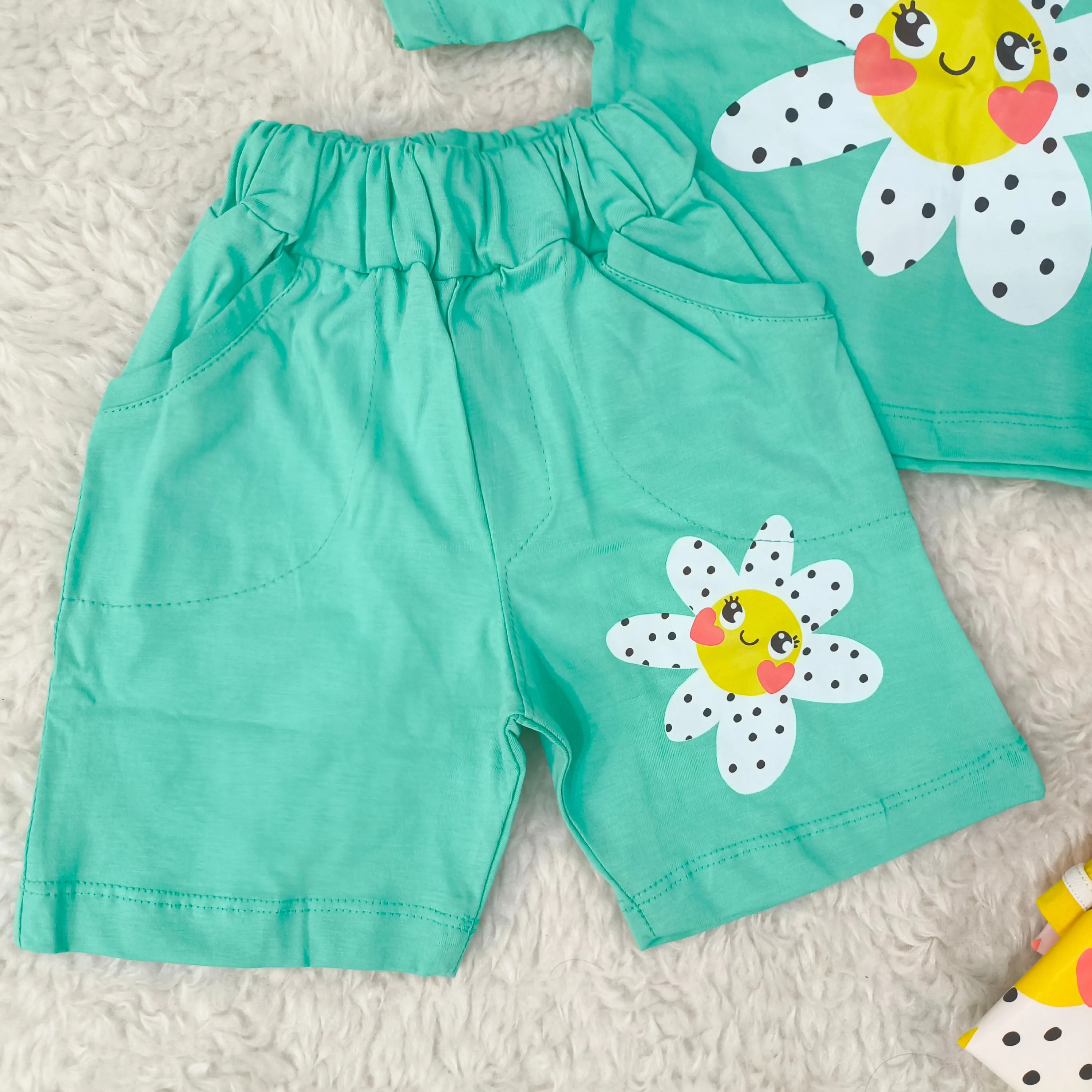 ست تیشرت و شورتک نخی طرح بابونه دخترانه و پسرانه خندان