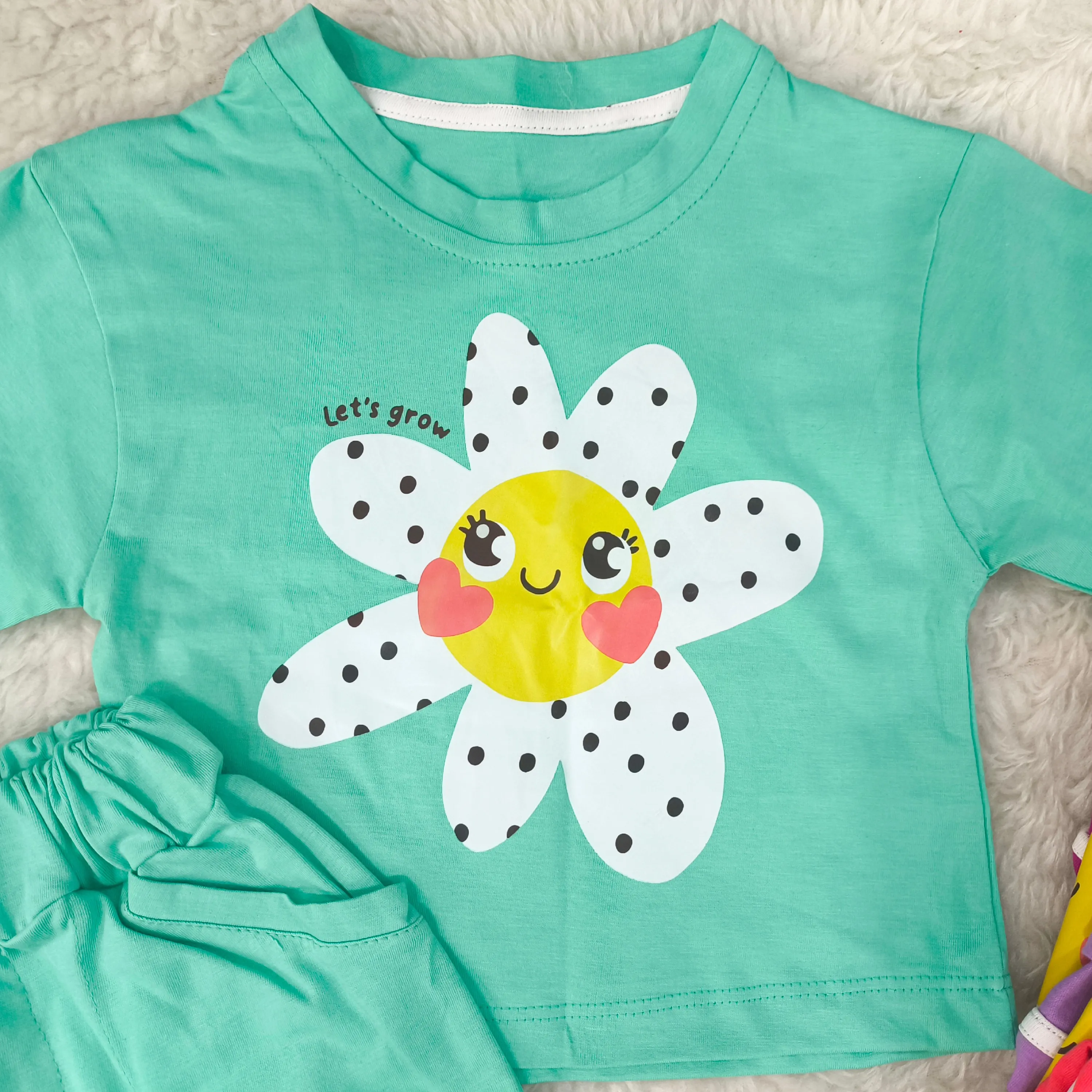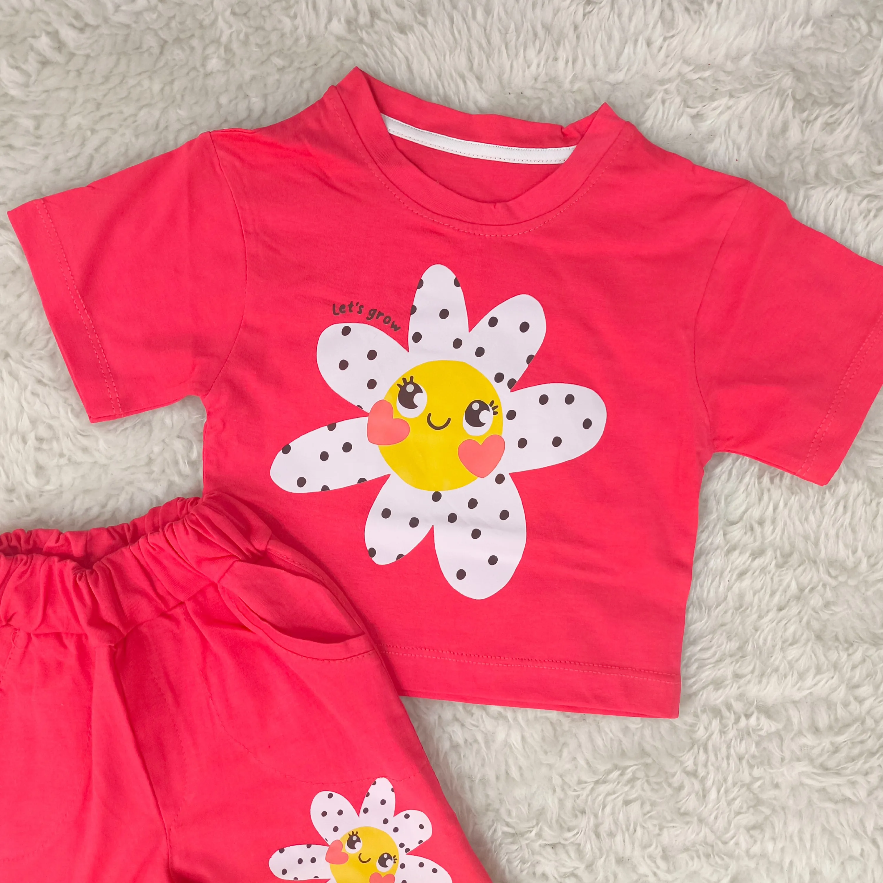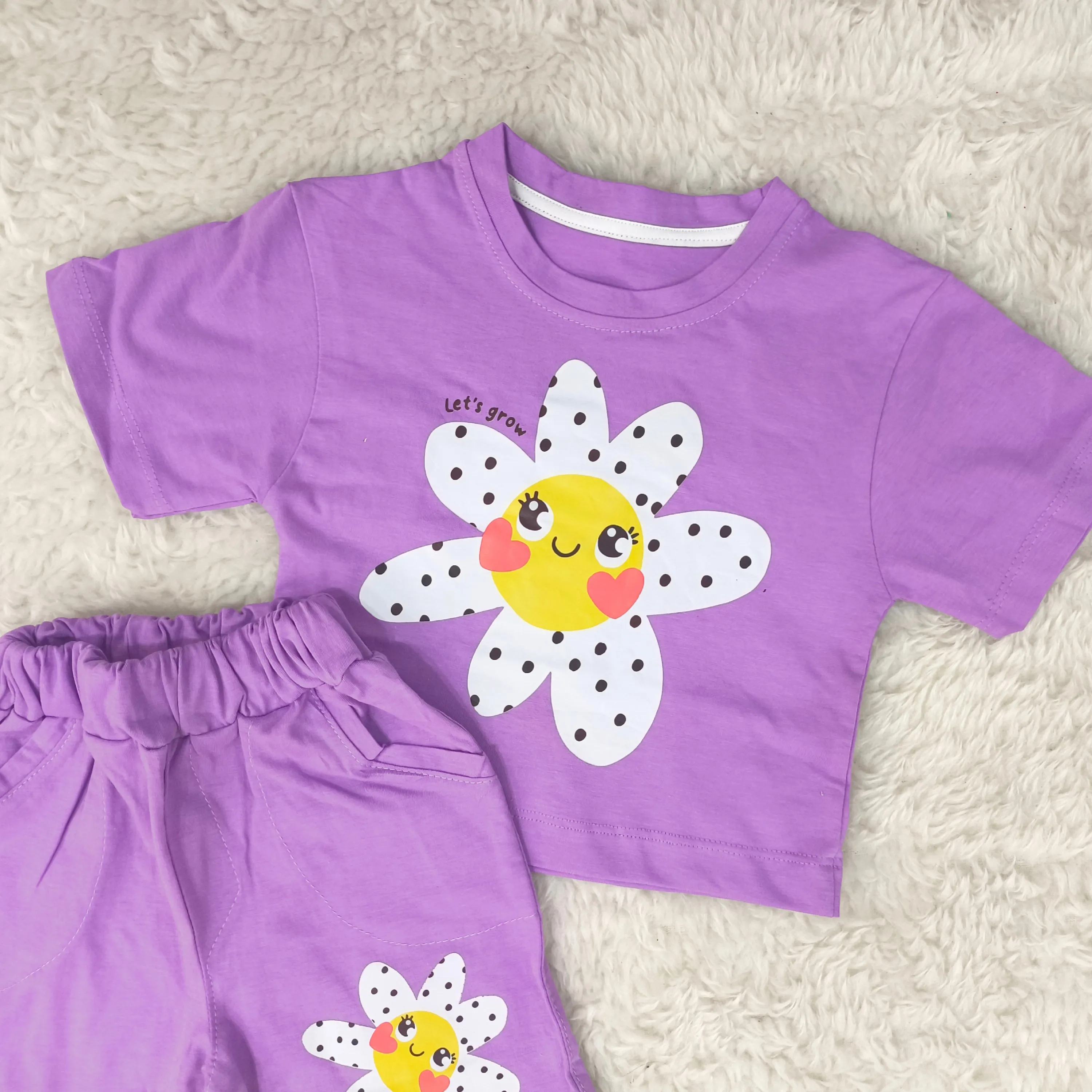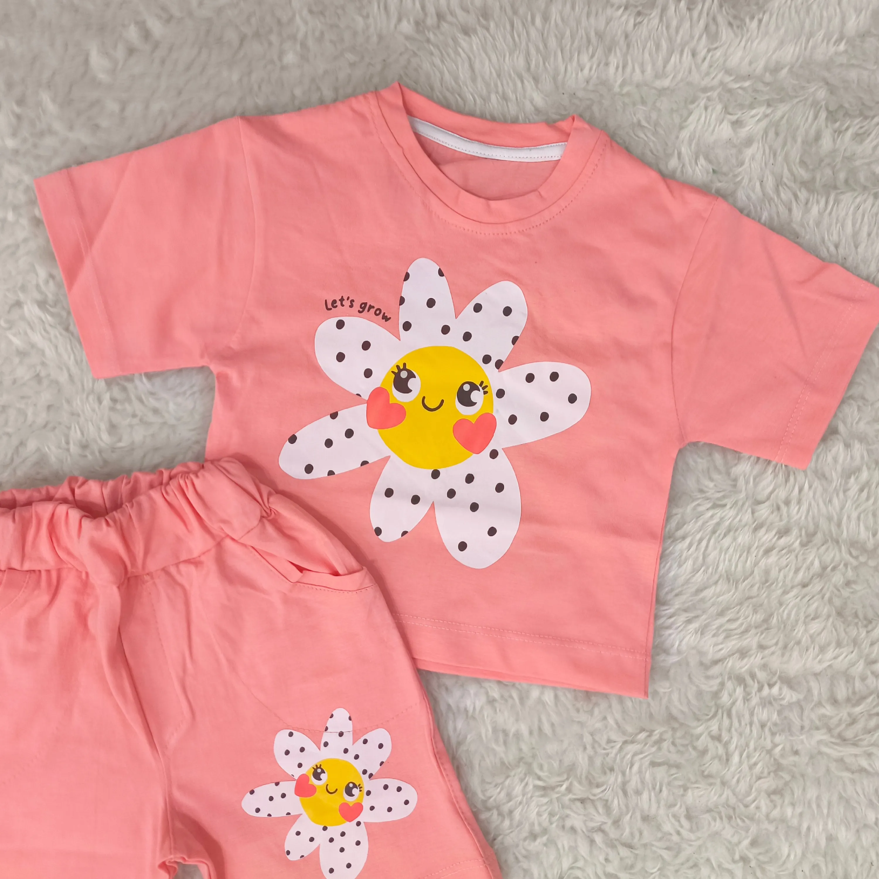 ست تیشرت و شورتک نخی طرح بابونه دخترانه و پسرانه خندان