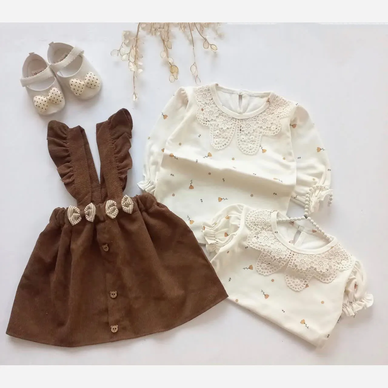 **ست بلوز و سارافون مخمل کبریتی طرحدار دخترانه مناسب 1 تا 3 سال**