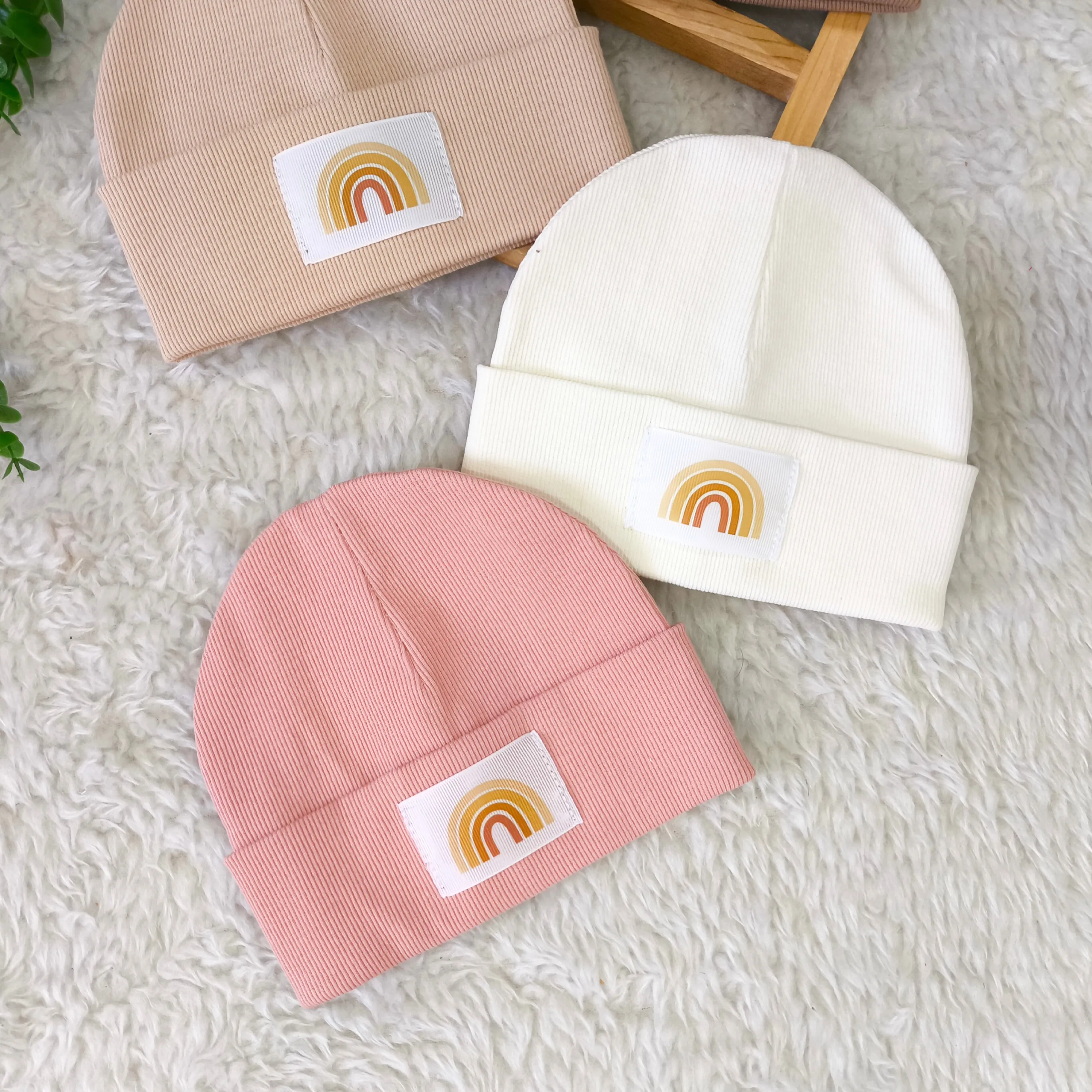 کلاه نوزادی طرح رنگین کمان | جنس کبریتی | مناسب 3 ماه تا 2 سال