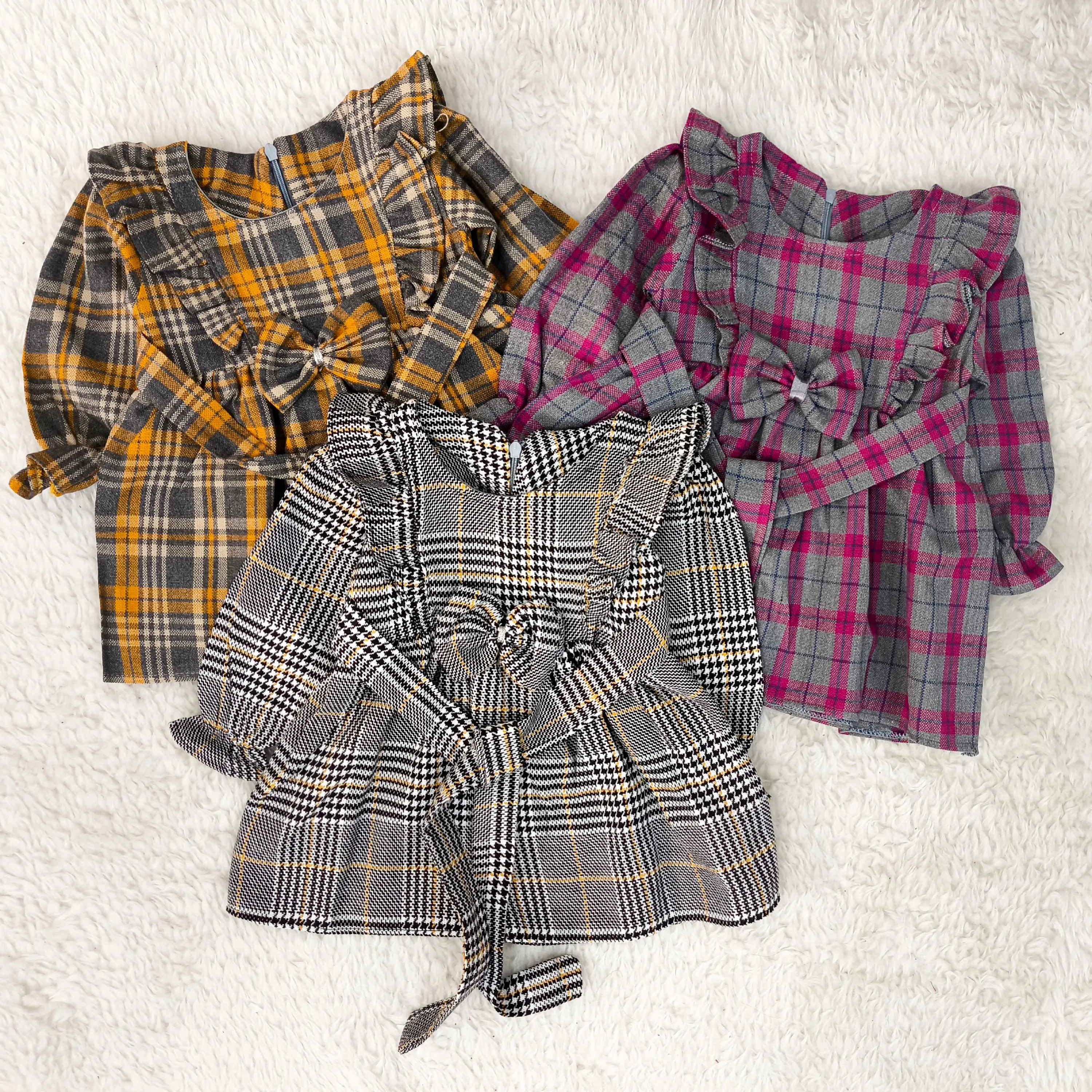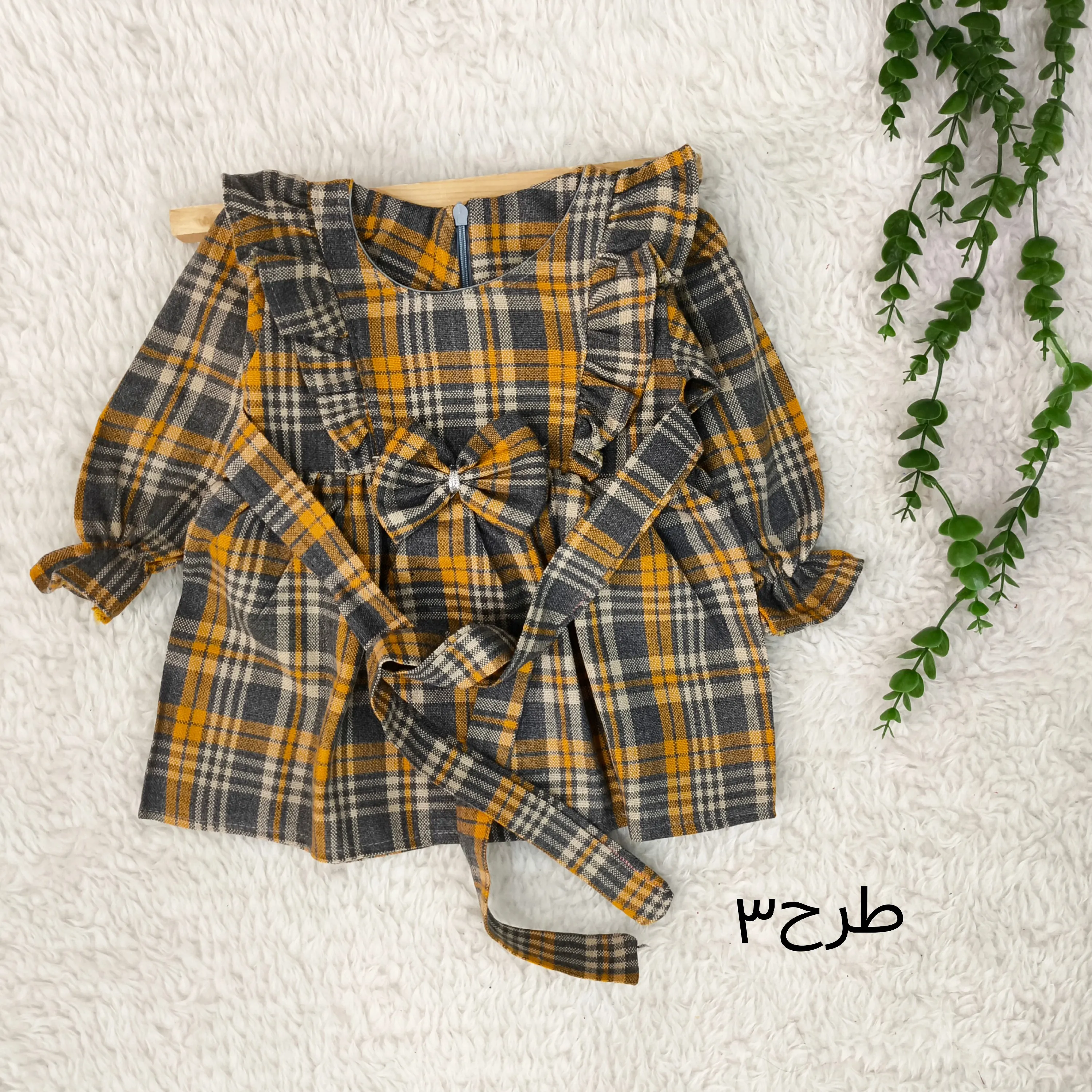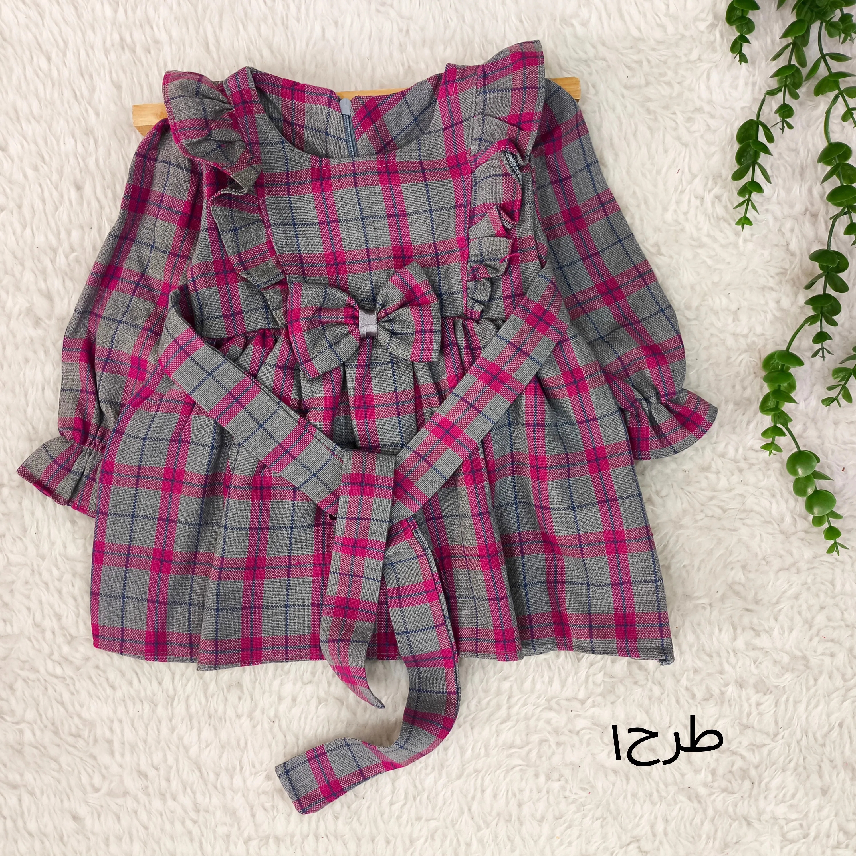 **پیراهن کشمیر چهارخانه دخترانه پاپیونی (مناسب 1 تا 4 سال)**