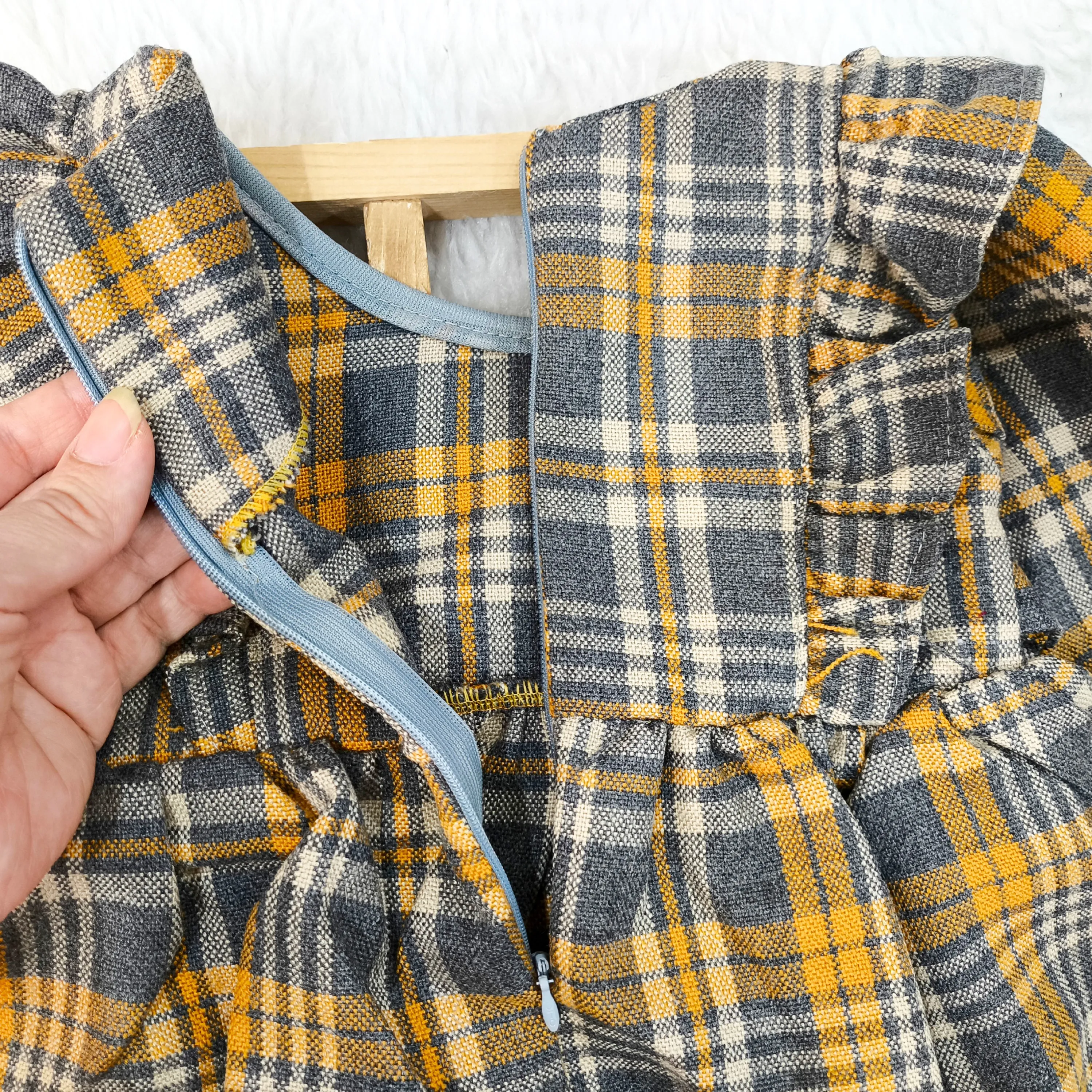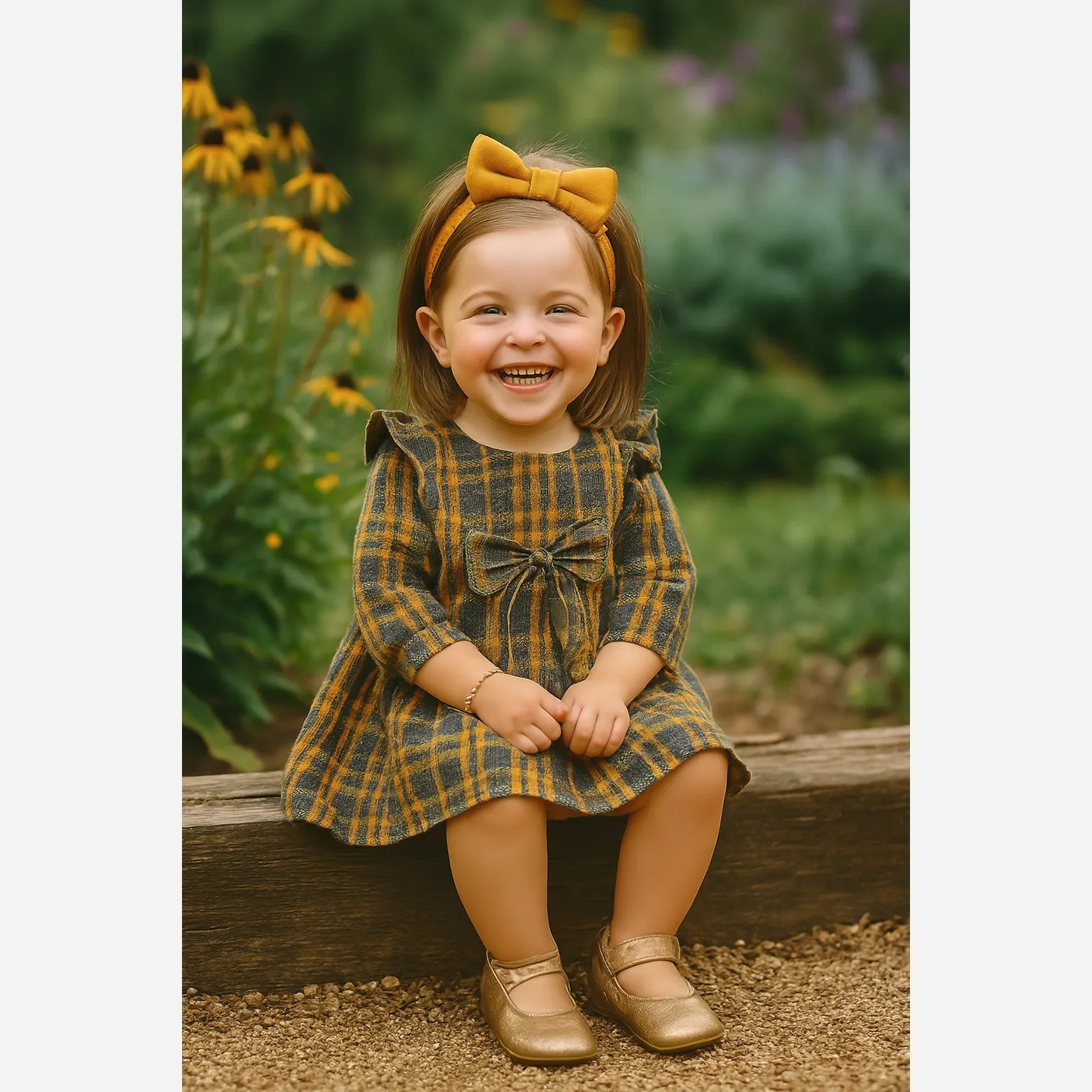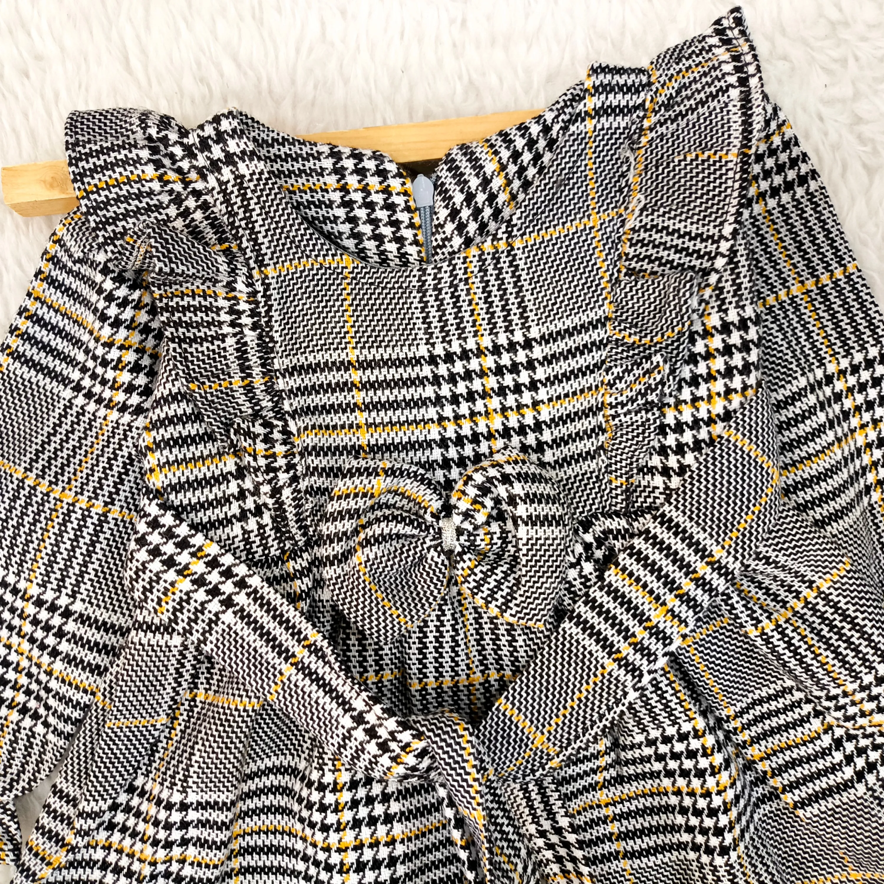 **پیراهن کشمیر چهارخانه دخترانه پاپیونی (مناسب 1 تا 4 سال)**