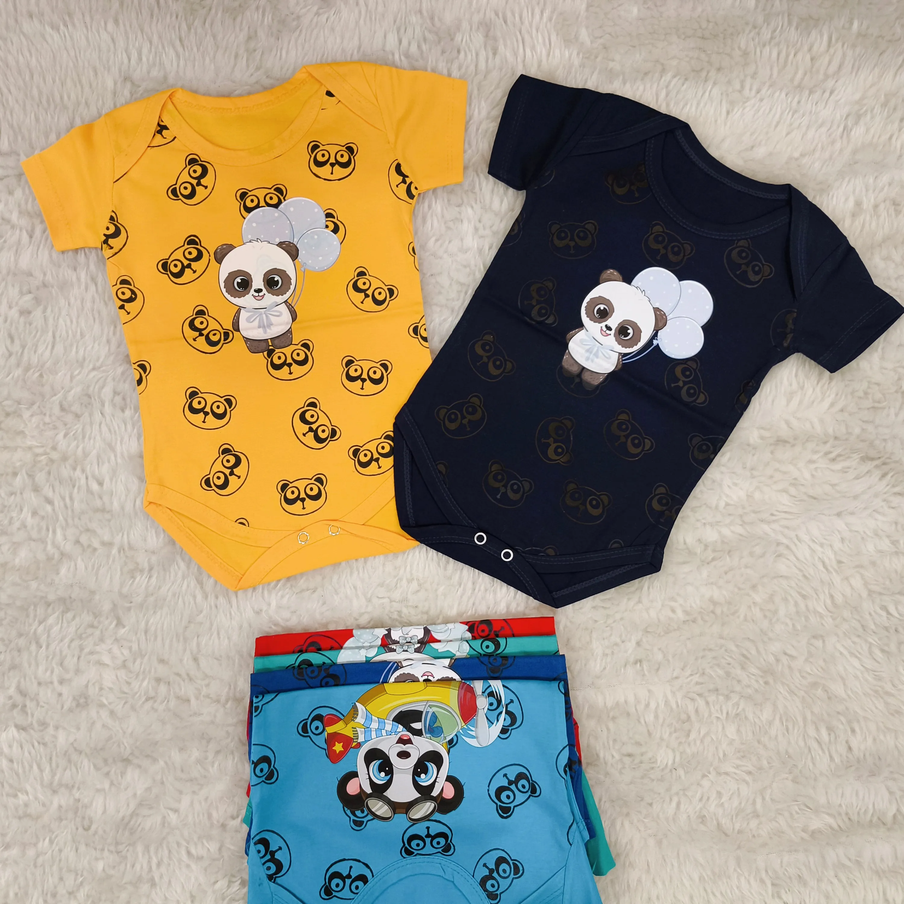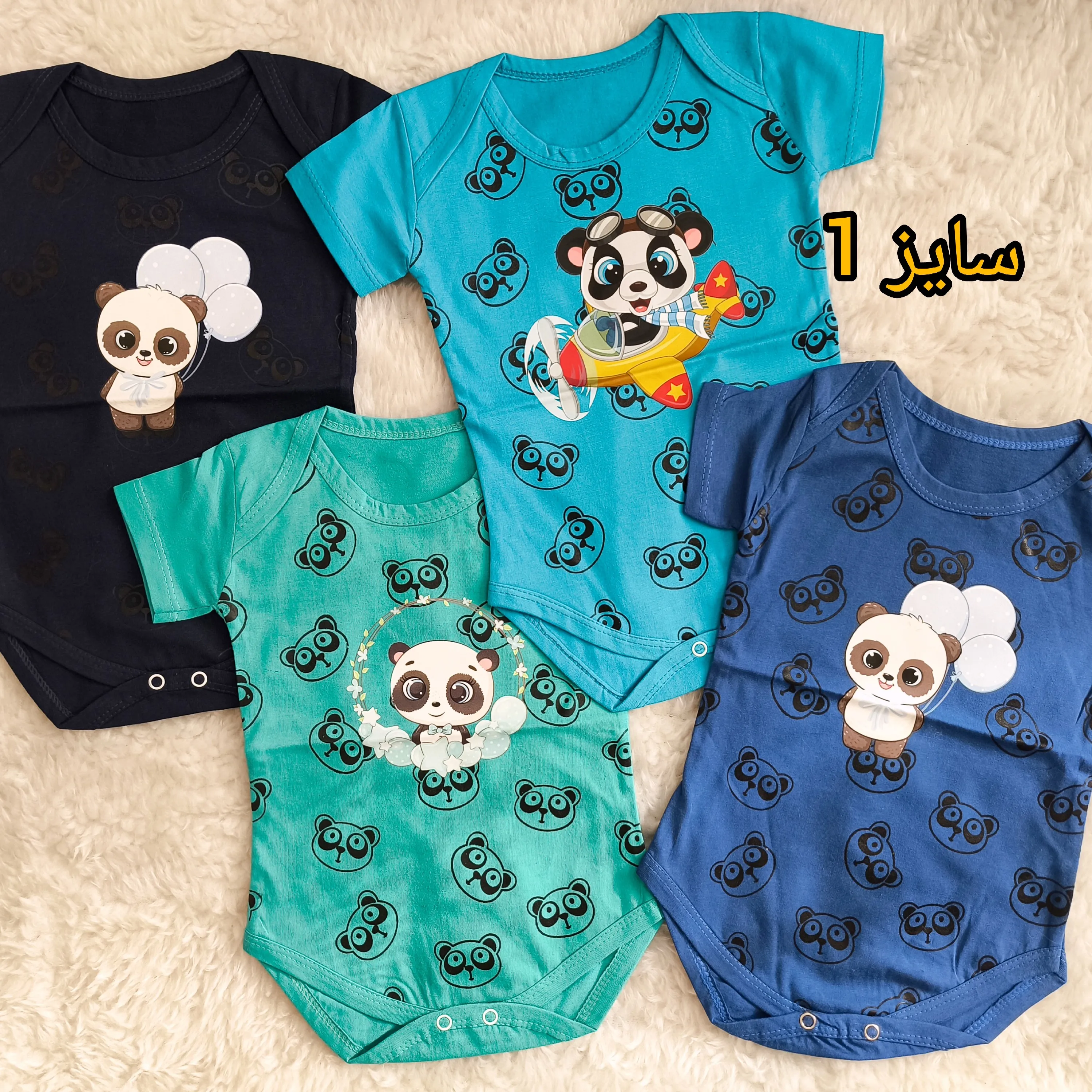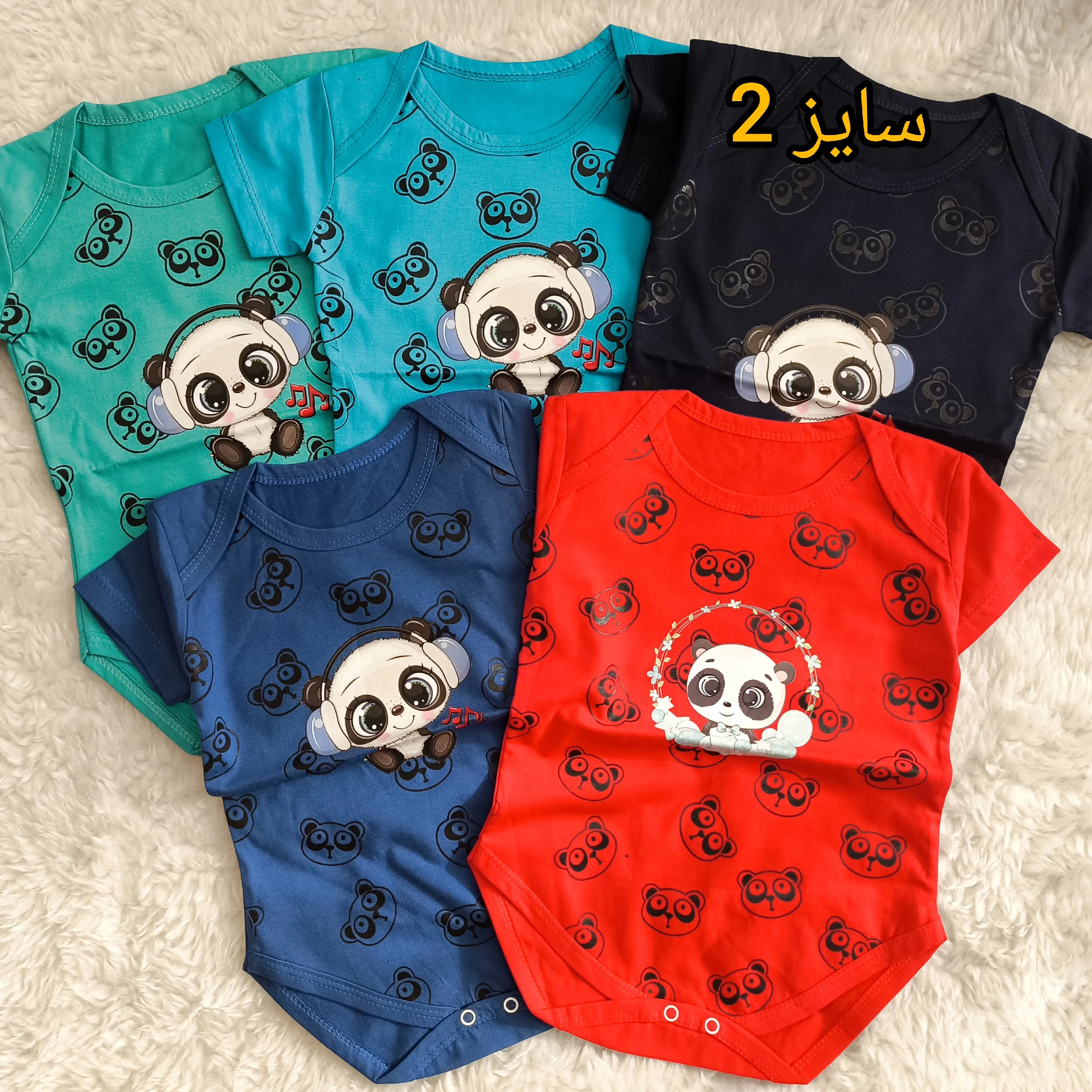 **بادی نوزادی آستین کوتاه طرح پاندا | پنبه سوپر | 6 رنگ | 3 تا 12 ماه**
