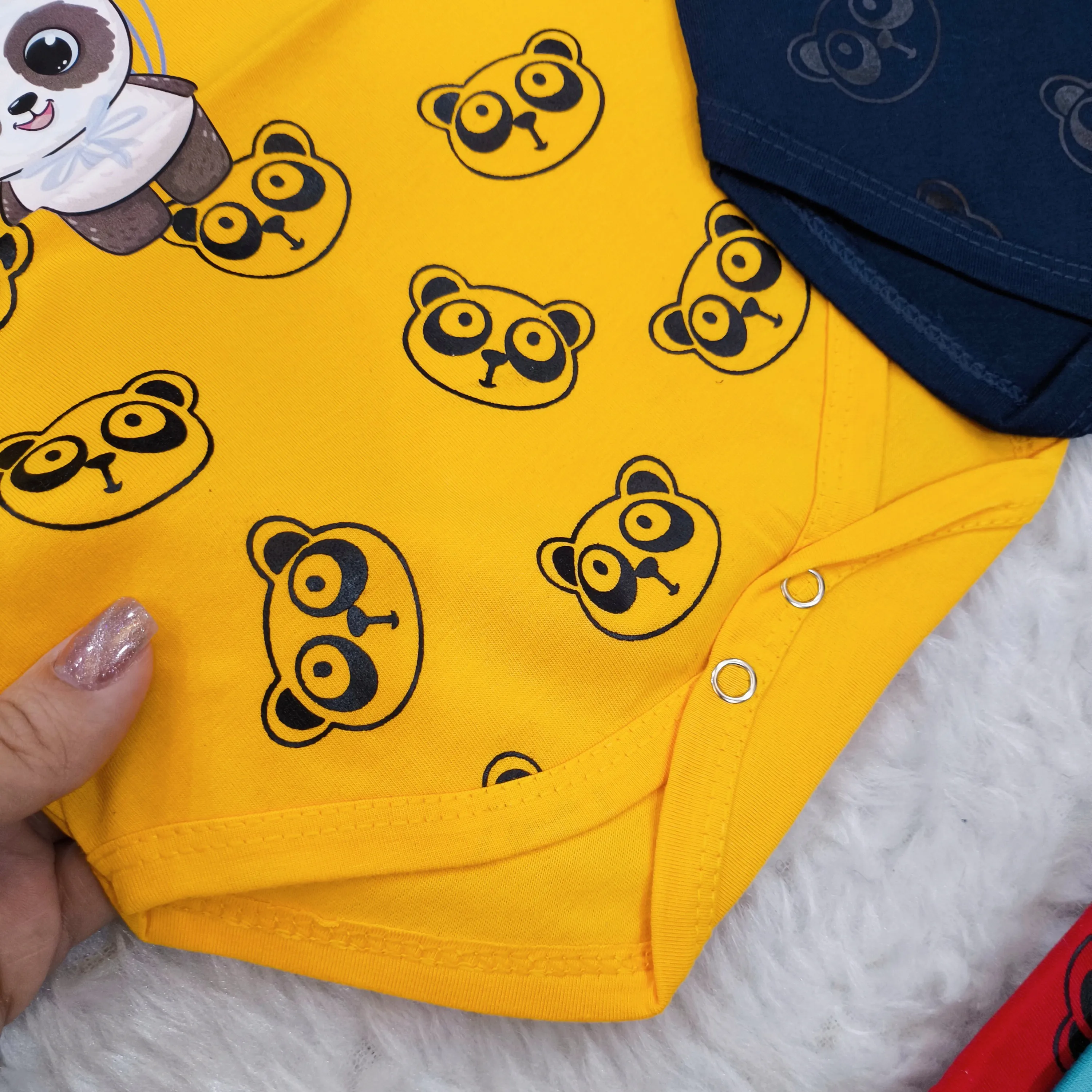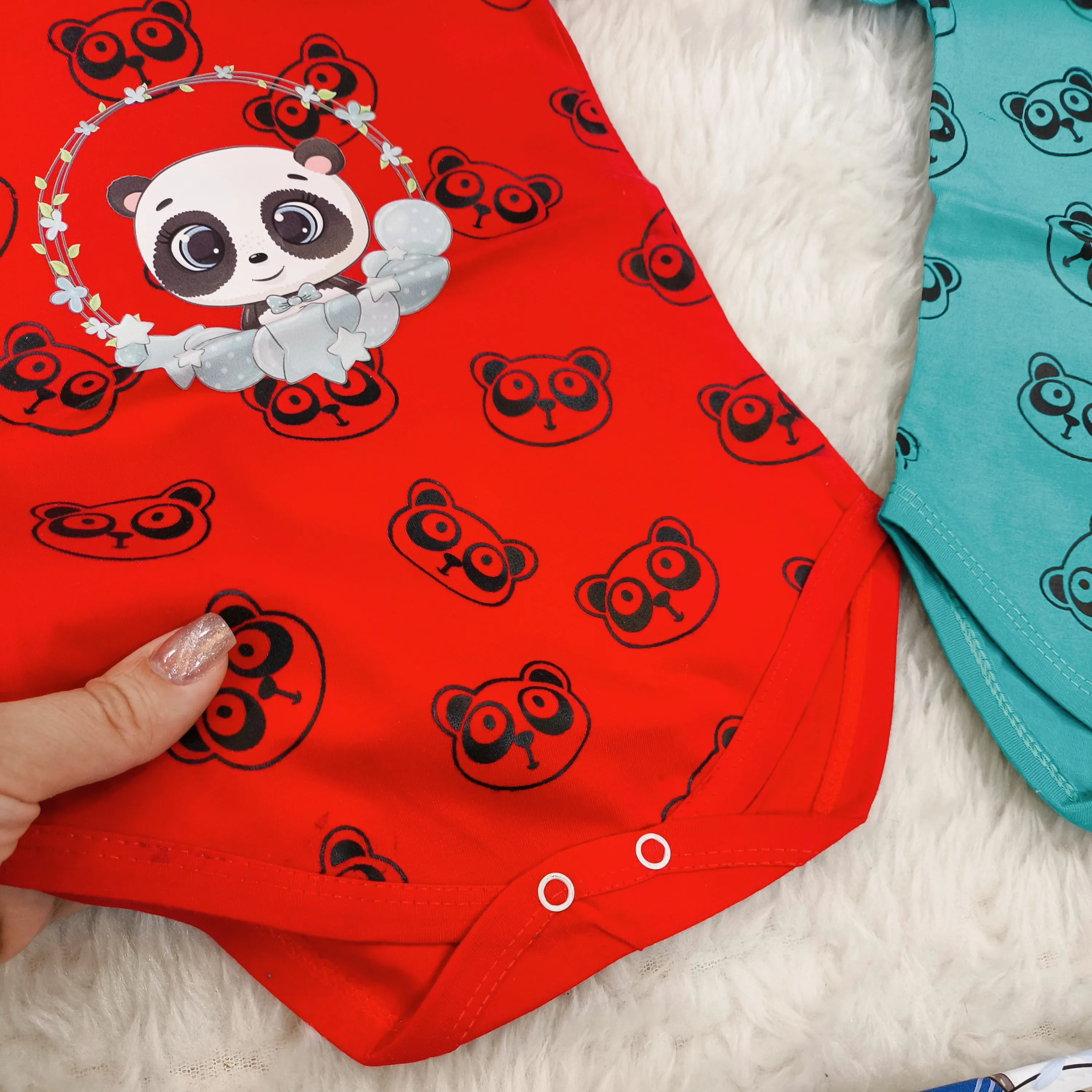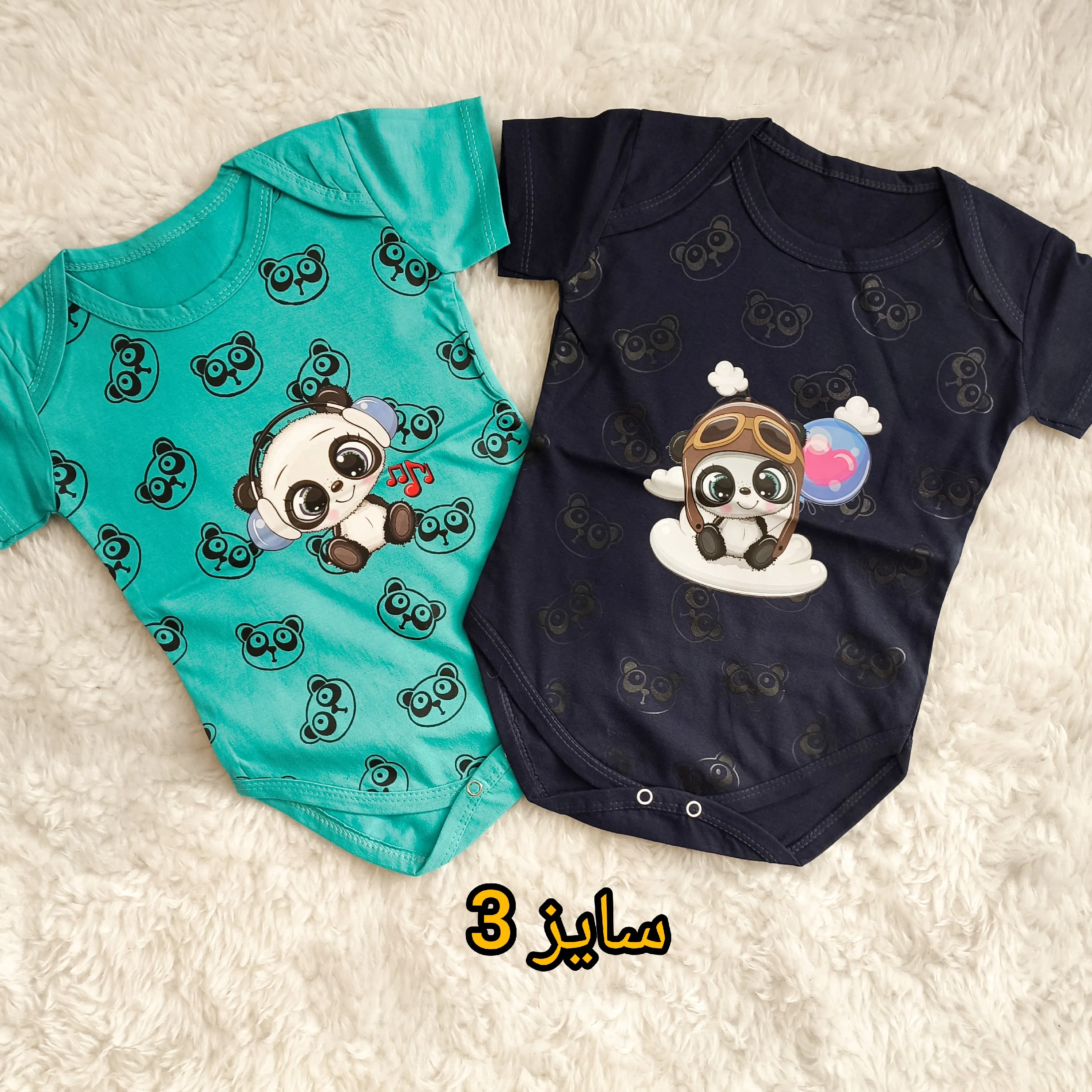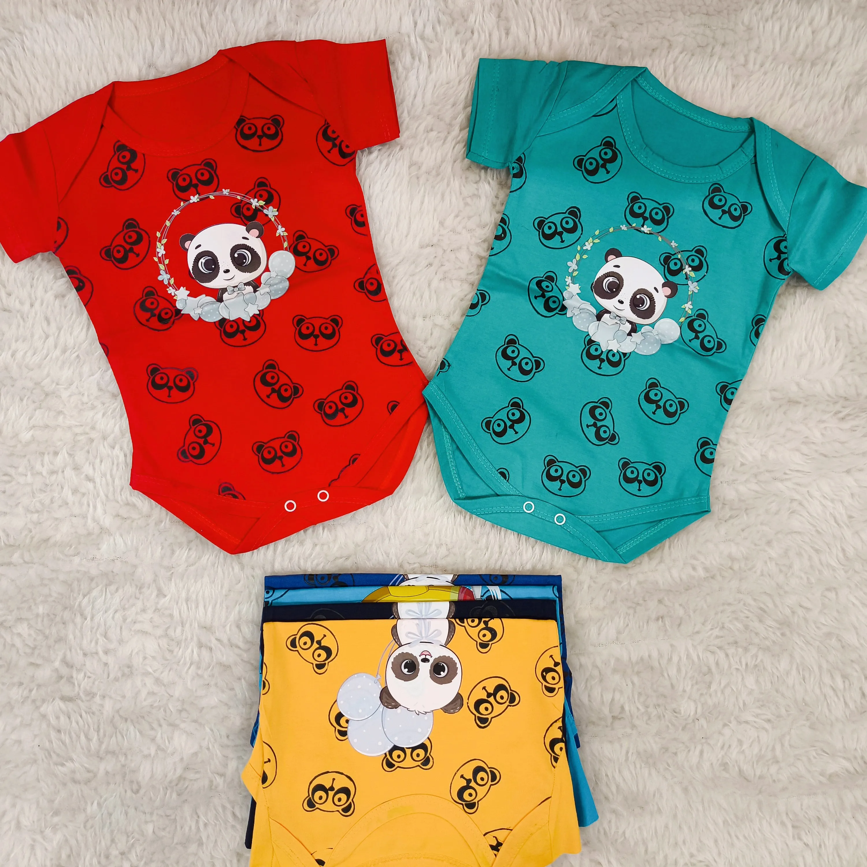 **بادی نوزادی آستین کوتاه طرح پاندا | پنبه سوپر | 6 رنگ | 3 تا 12 ماه**