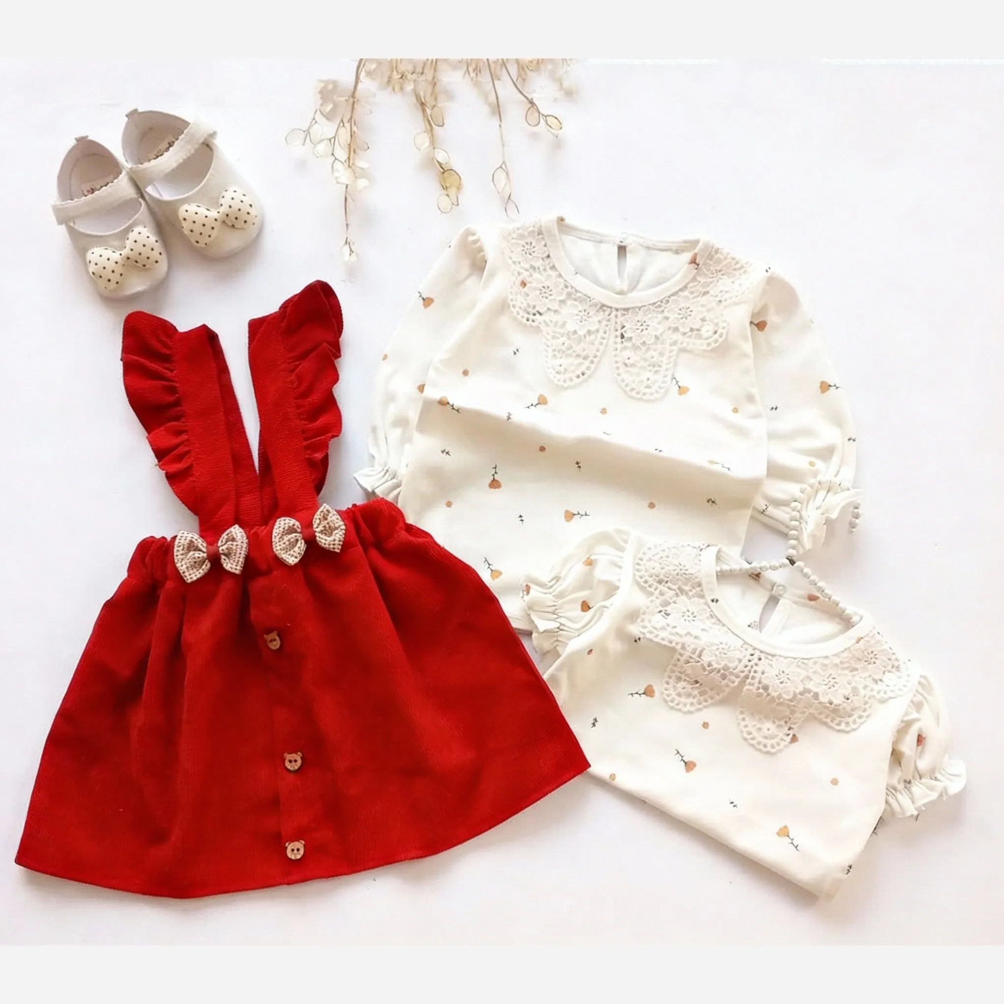 **ست بلوز و سارافون مخمل کبریتی دخترانه عیدانه (مناسب 1 تا 3 سال)**