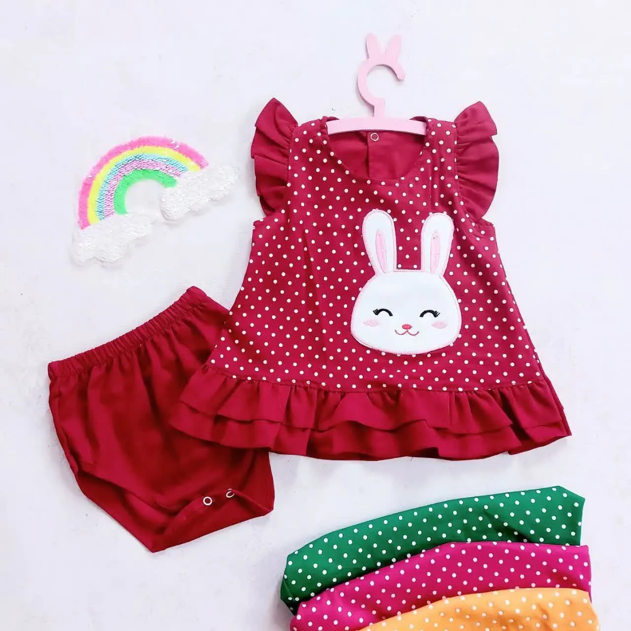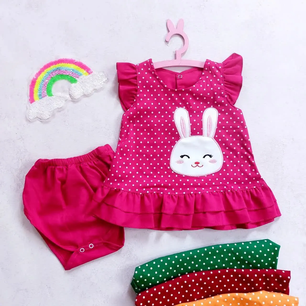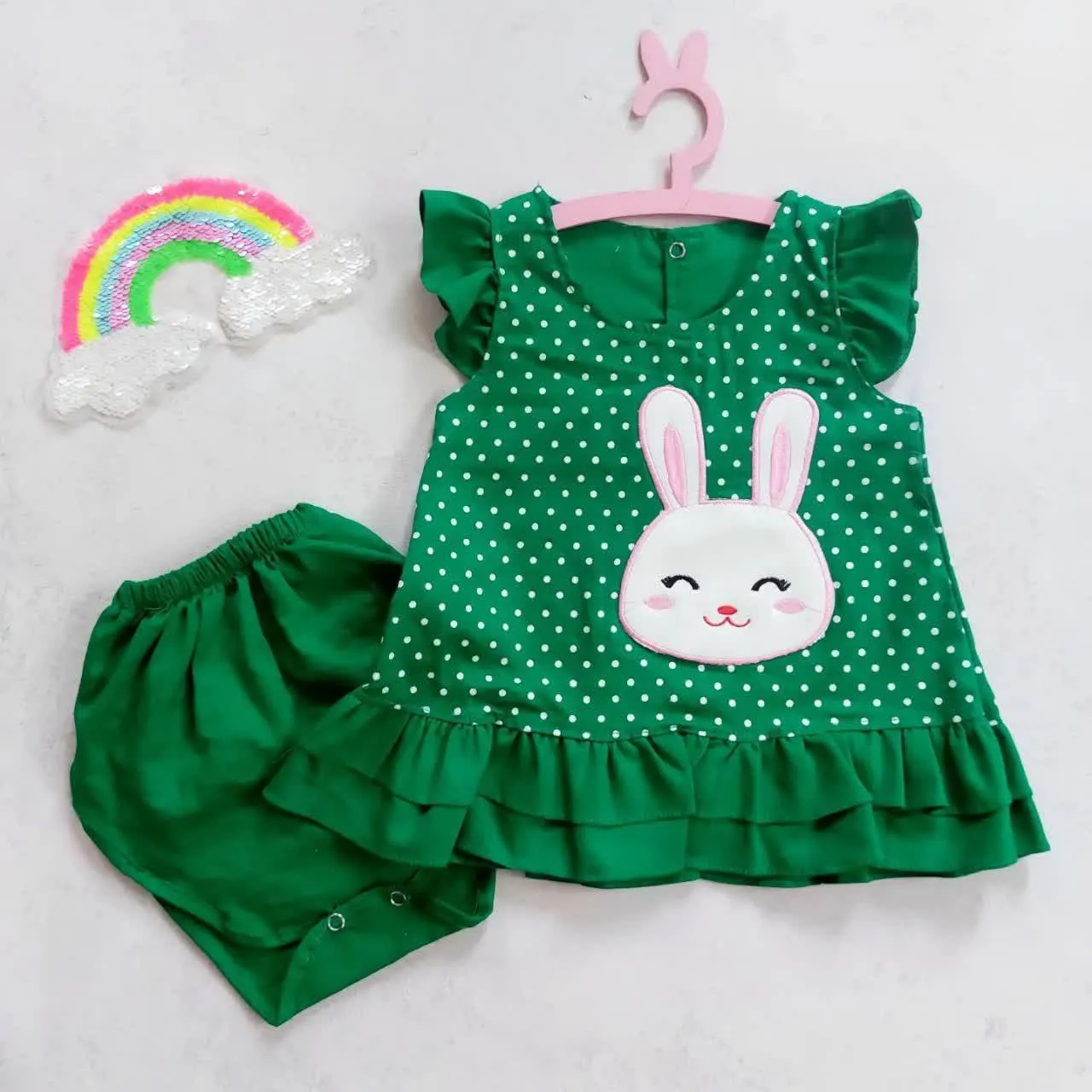 سارافون و شورت دخترانه طرح خرگوش | لباس تابستانی نخی خنک | مناسب 1 تا 3 سال