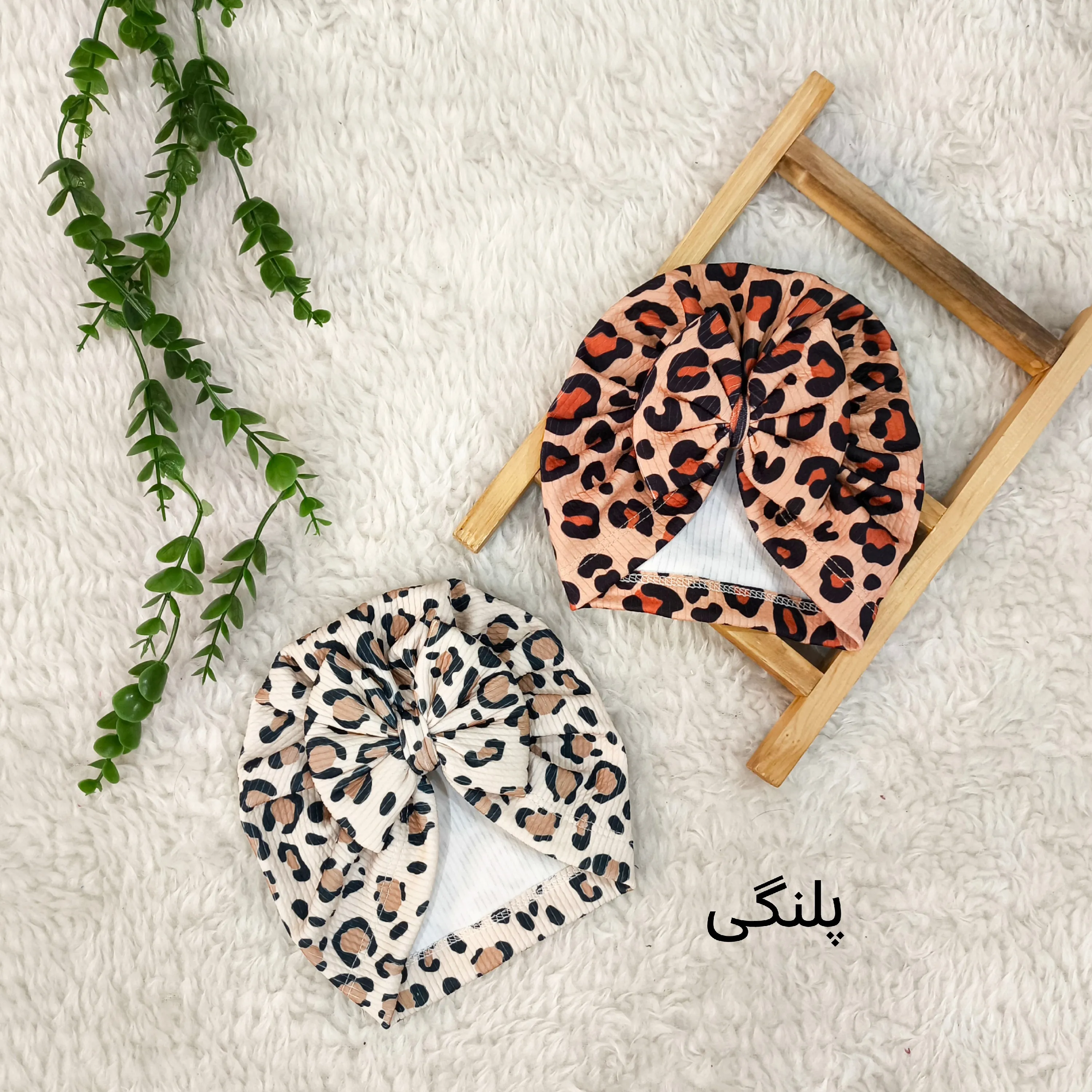 **توربان نوزاد دخترانه طرح پلنگی کبریتی | مناسب 2 ماه تا 2 سال**