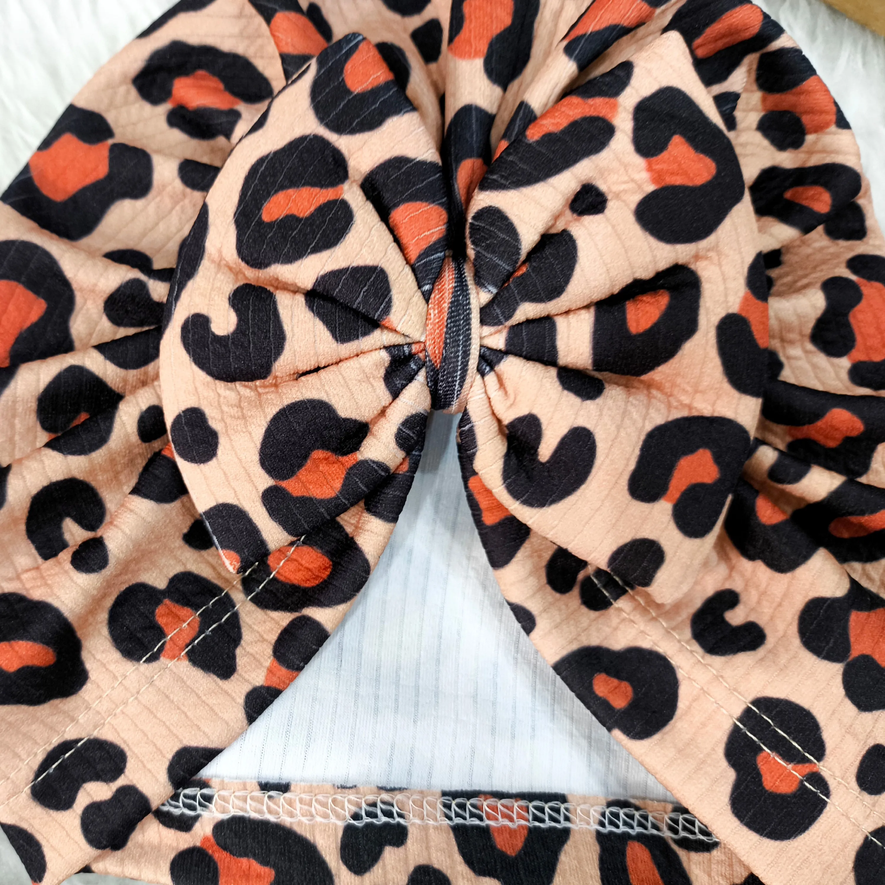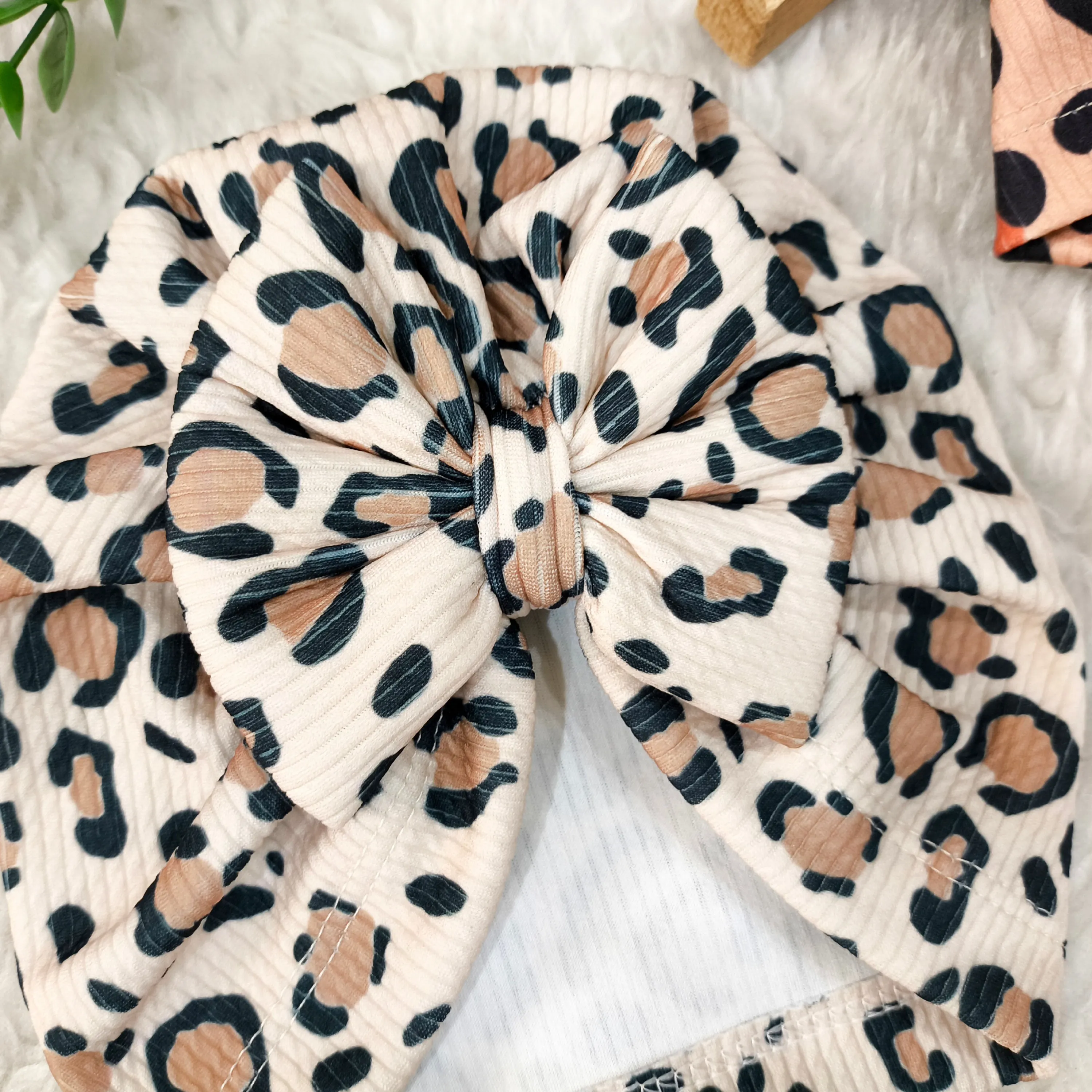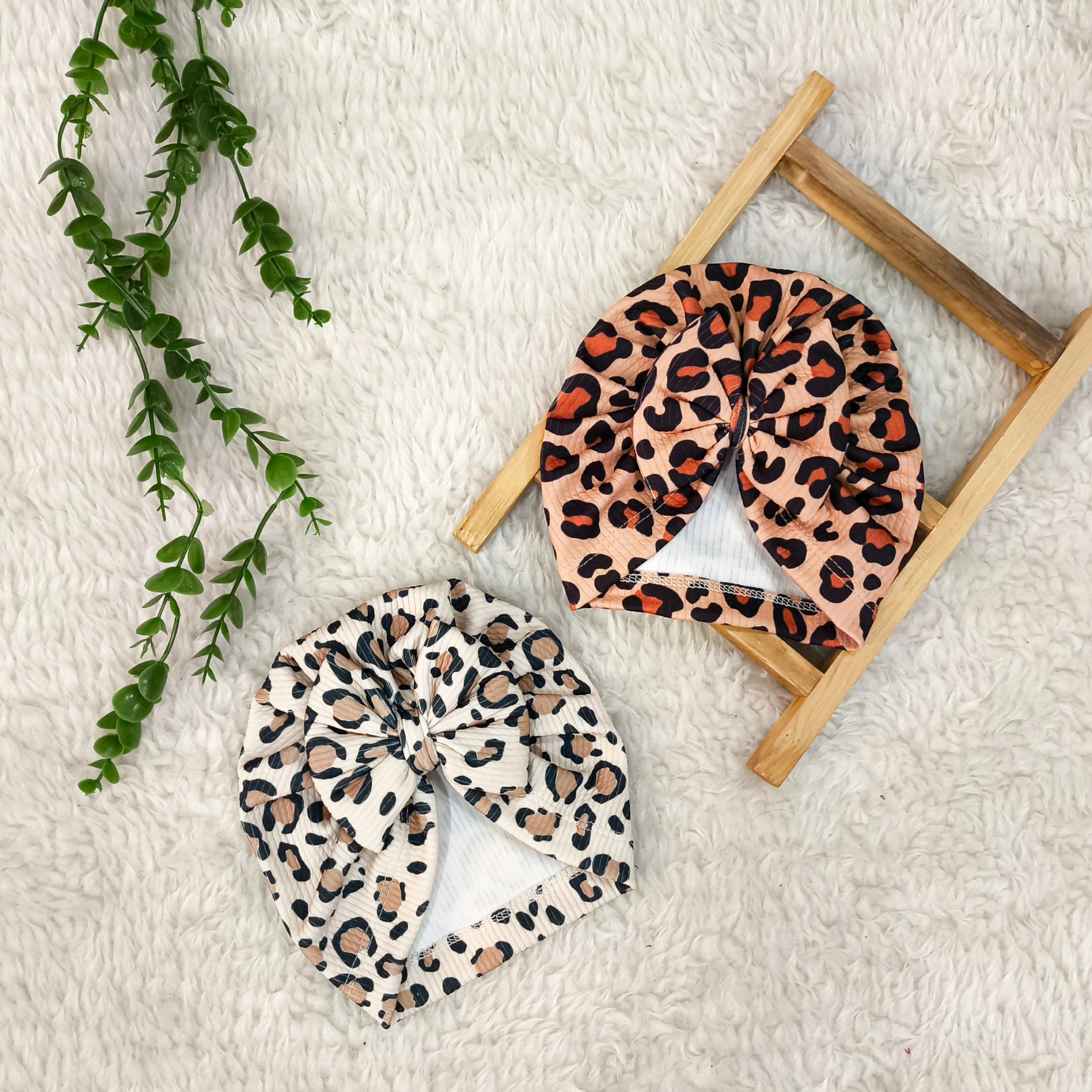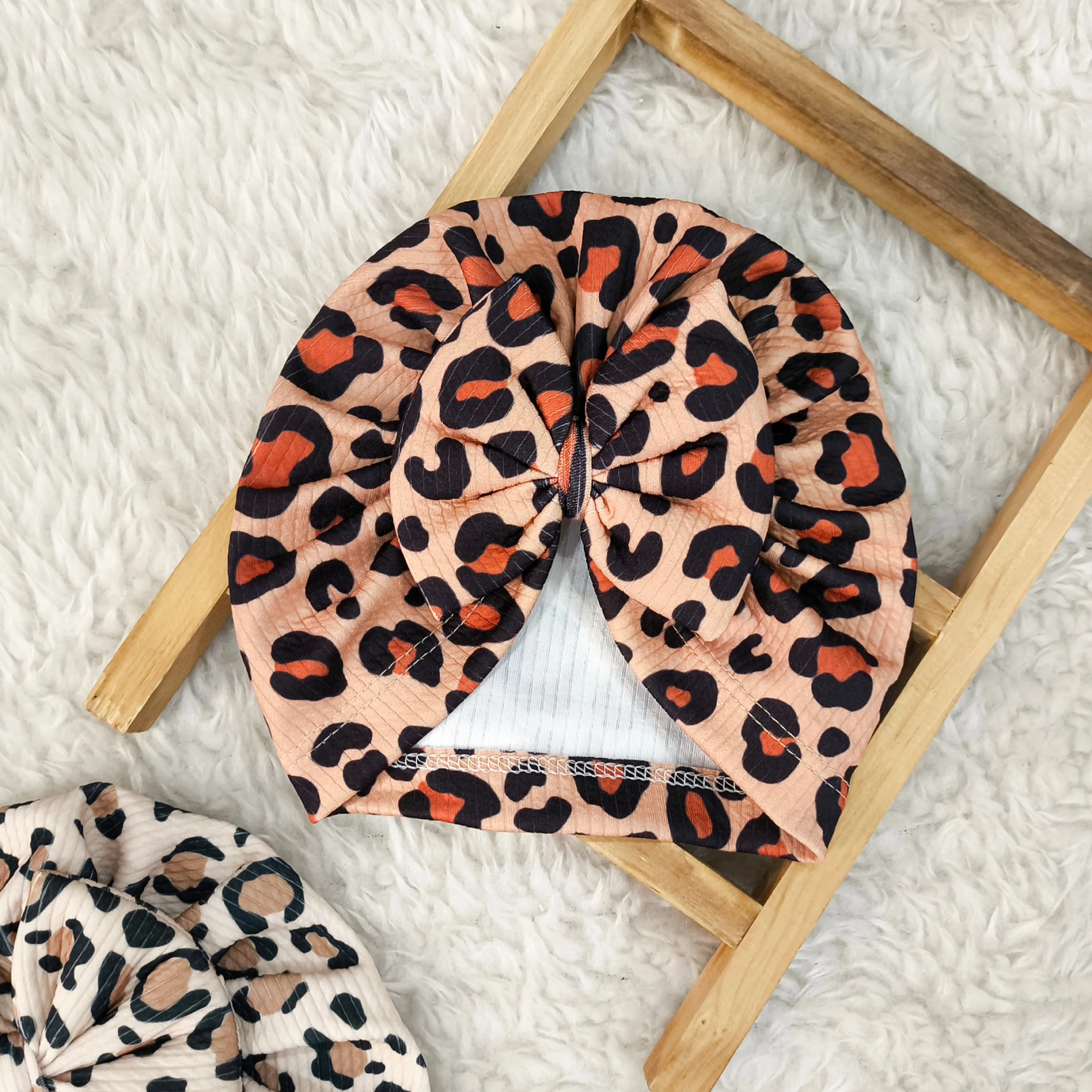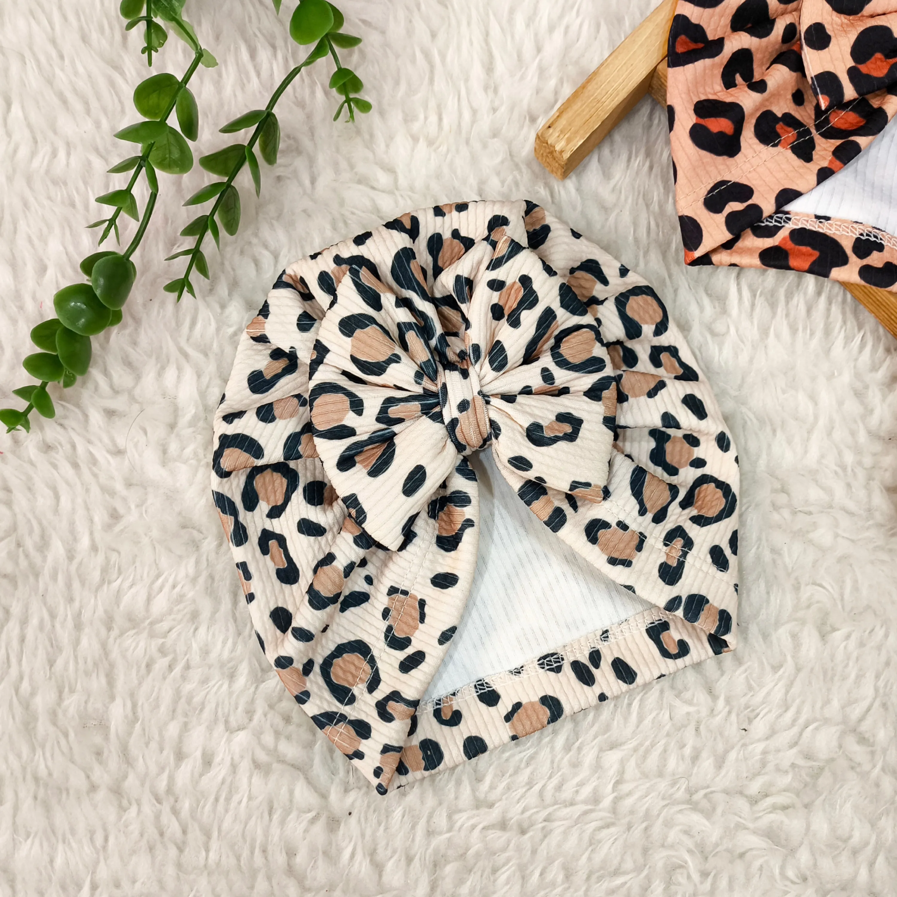 توربان نوزاد دخترانه طرح پلنگی کبریتی | مناسب 2 ماه تا 2 سال