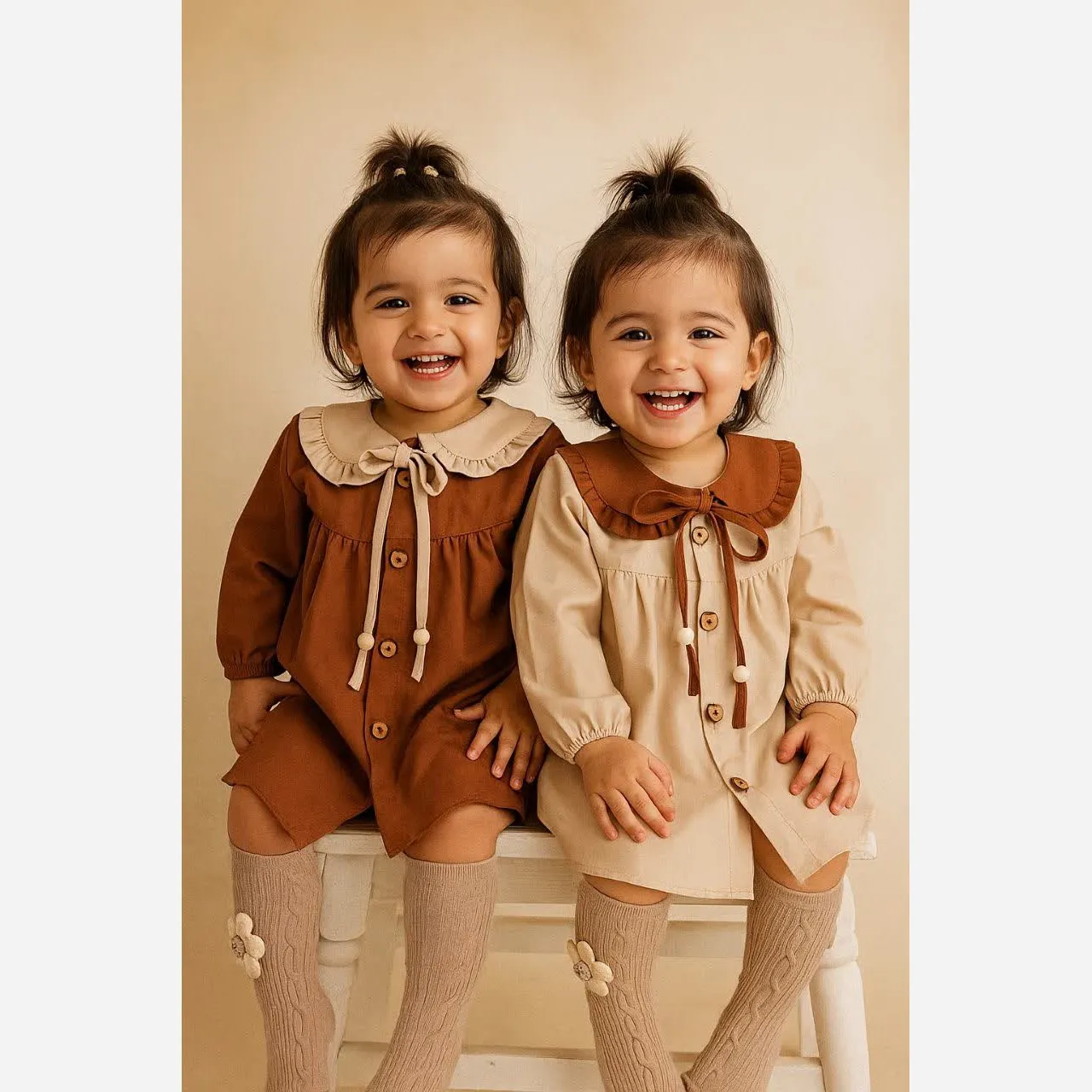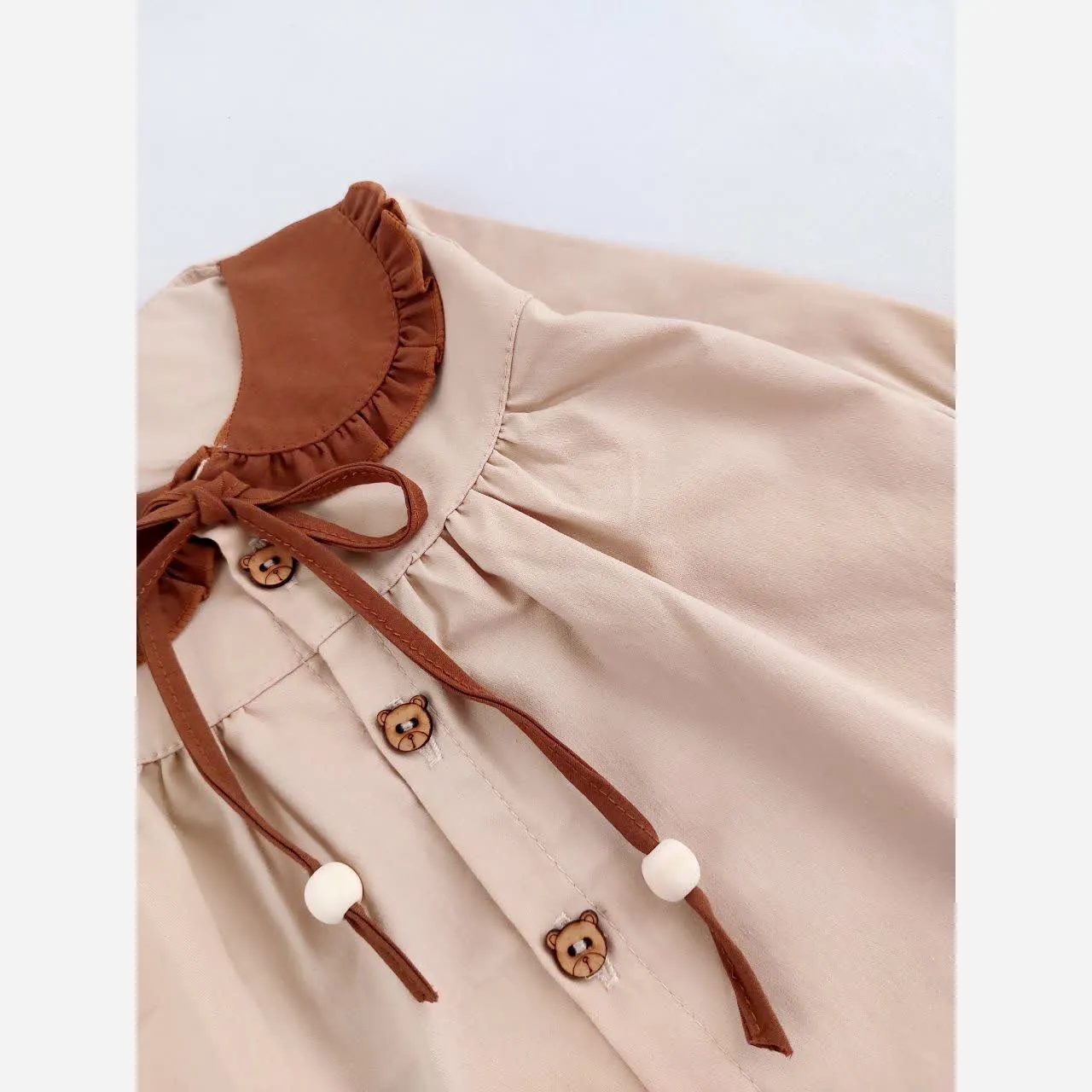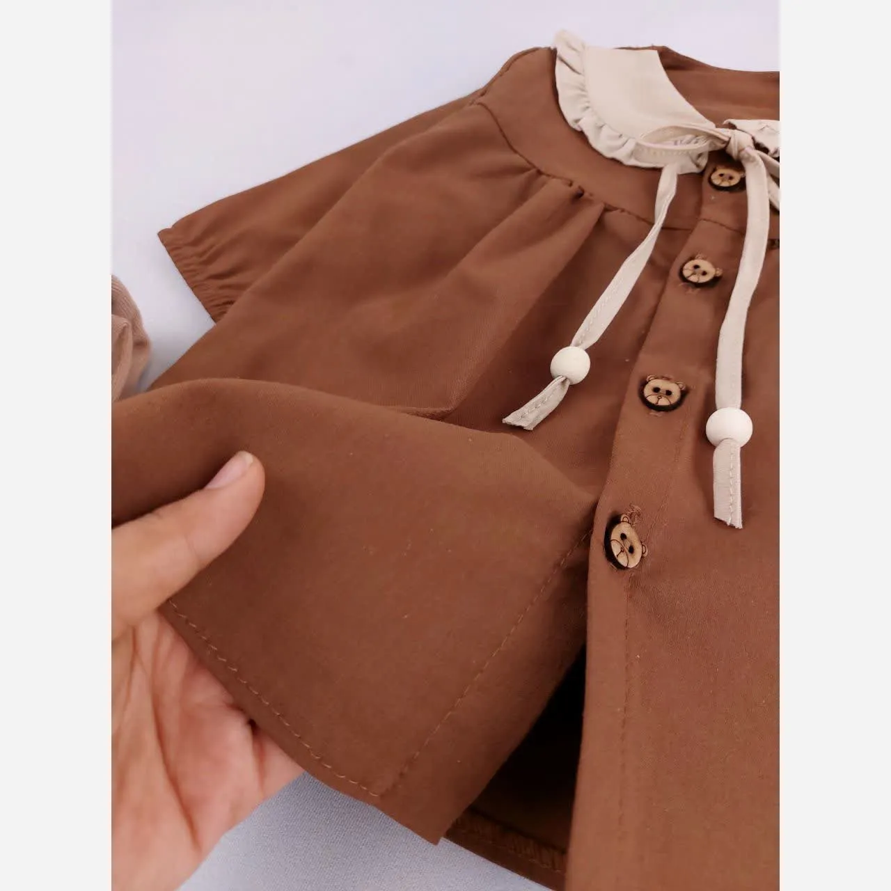 **پیراهن کتان دخترانه یقه ب ببری آستین بلند (مناسب 6 ماه تا 3 سال)**